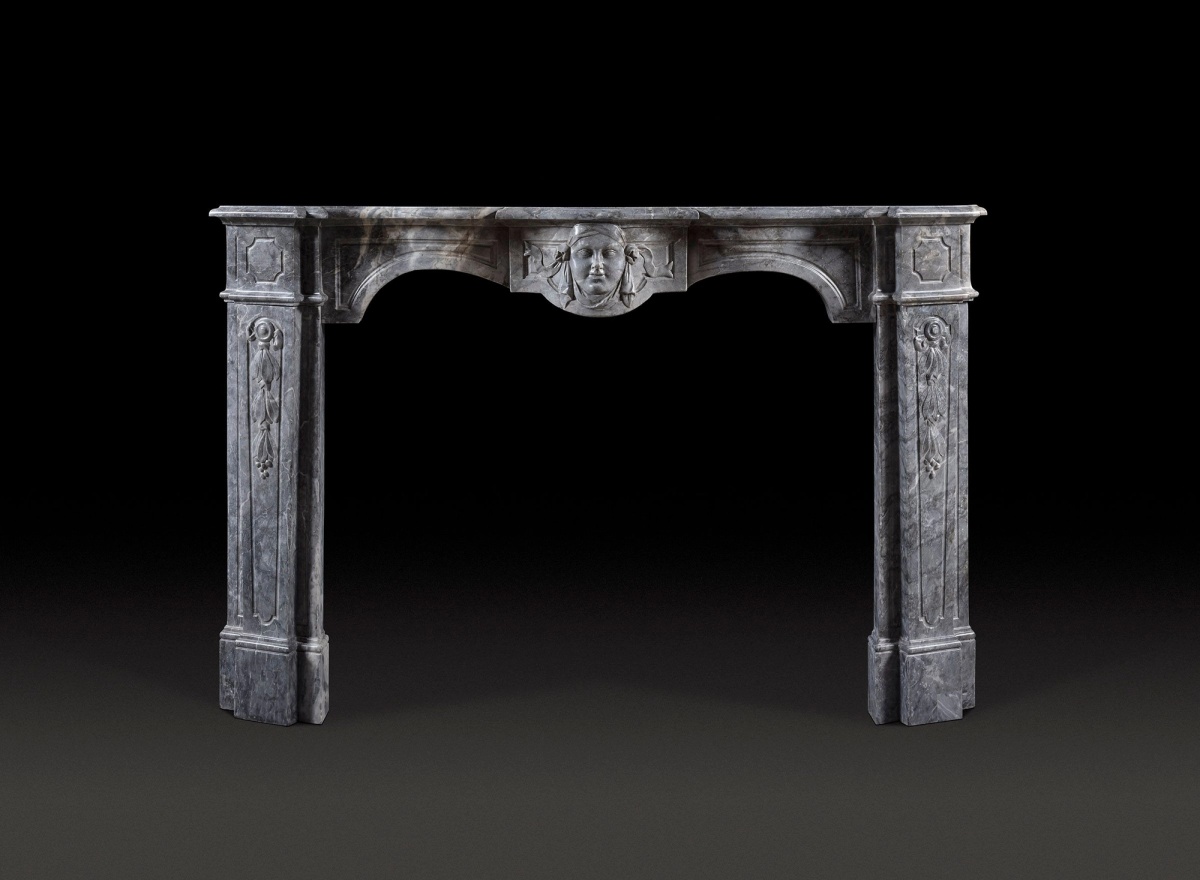 An 18th Century Italian Chimneypiece Carved in Bardiglio Marble