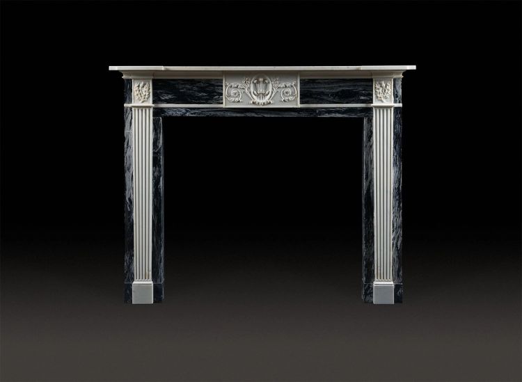 An attractive late 18th century, Scottish antique fireplace of statuary and variegated grey and black flecked marbles. Circa 1795. Originally from Thriepley House, Scotland.