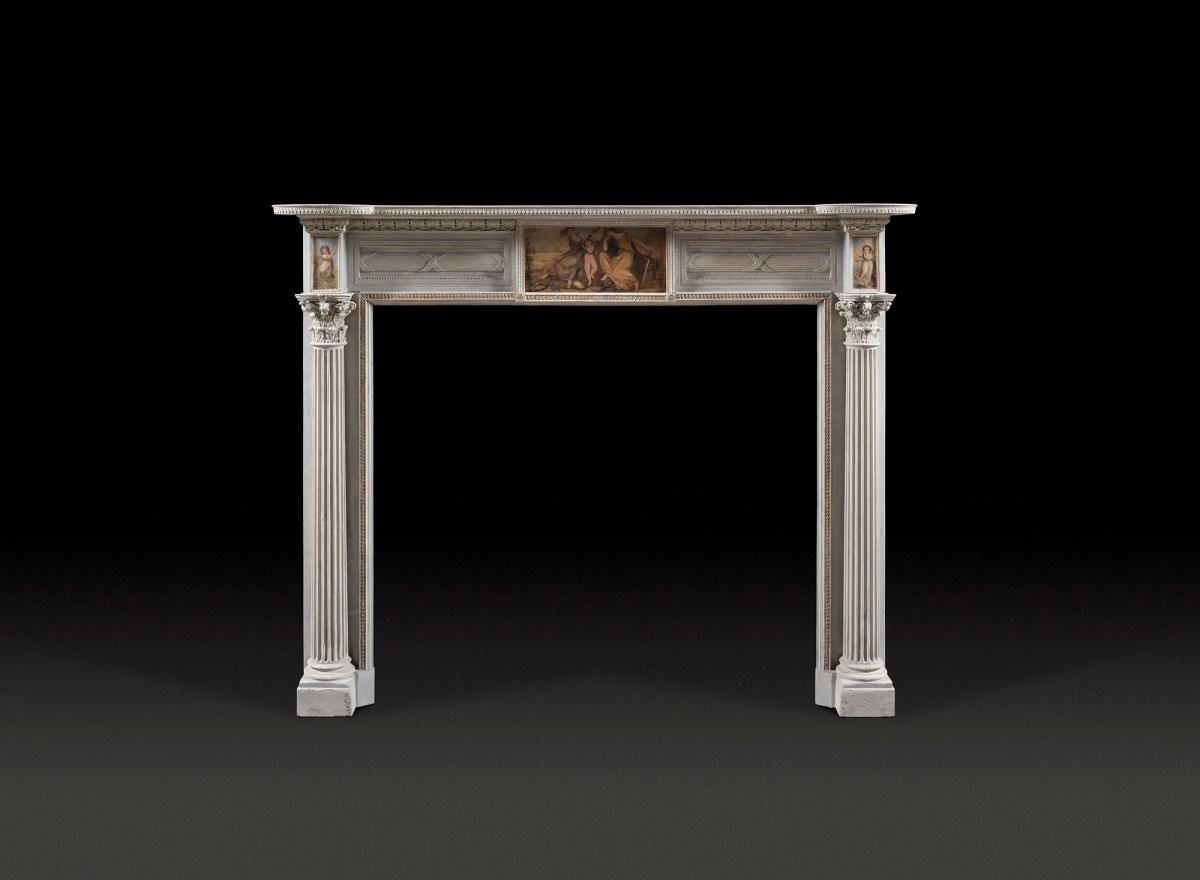 A Refined Neoclassical 18th Century Chimneypiece with a Light and Elegant Design in Painted Timber.