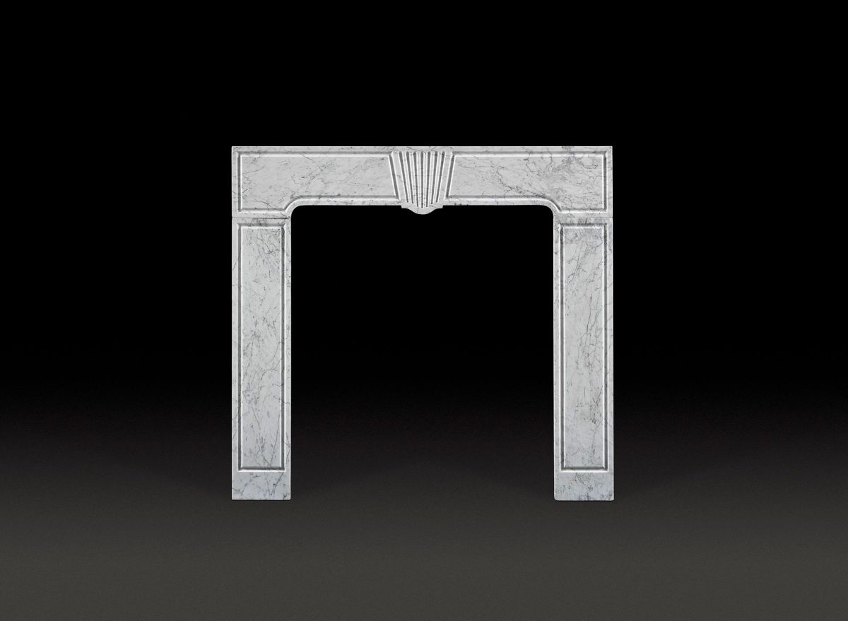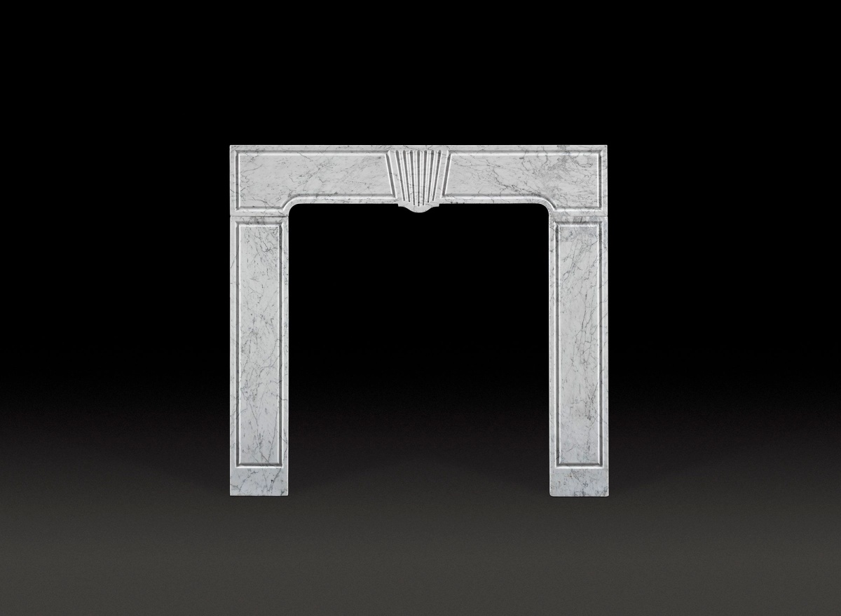The frieze is decorated with a central keystone with graduated flutes, and the sides, and jambs with simple incised geometric moldings. Circa 1710.