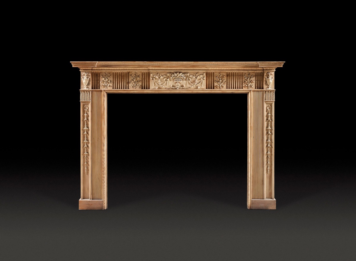 A late George III finely carved pine and limewood chimneypiece of large proportions.
