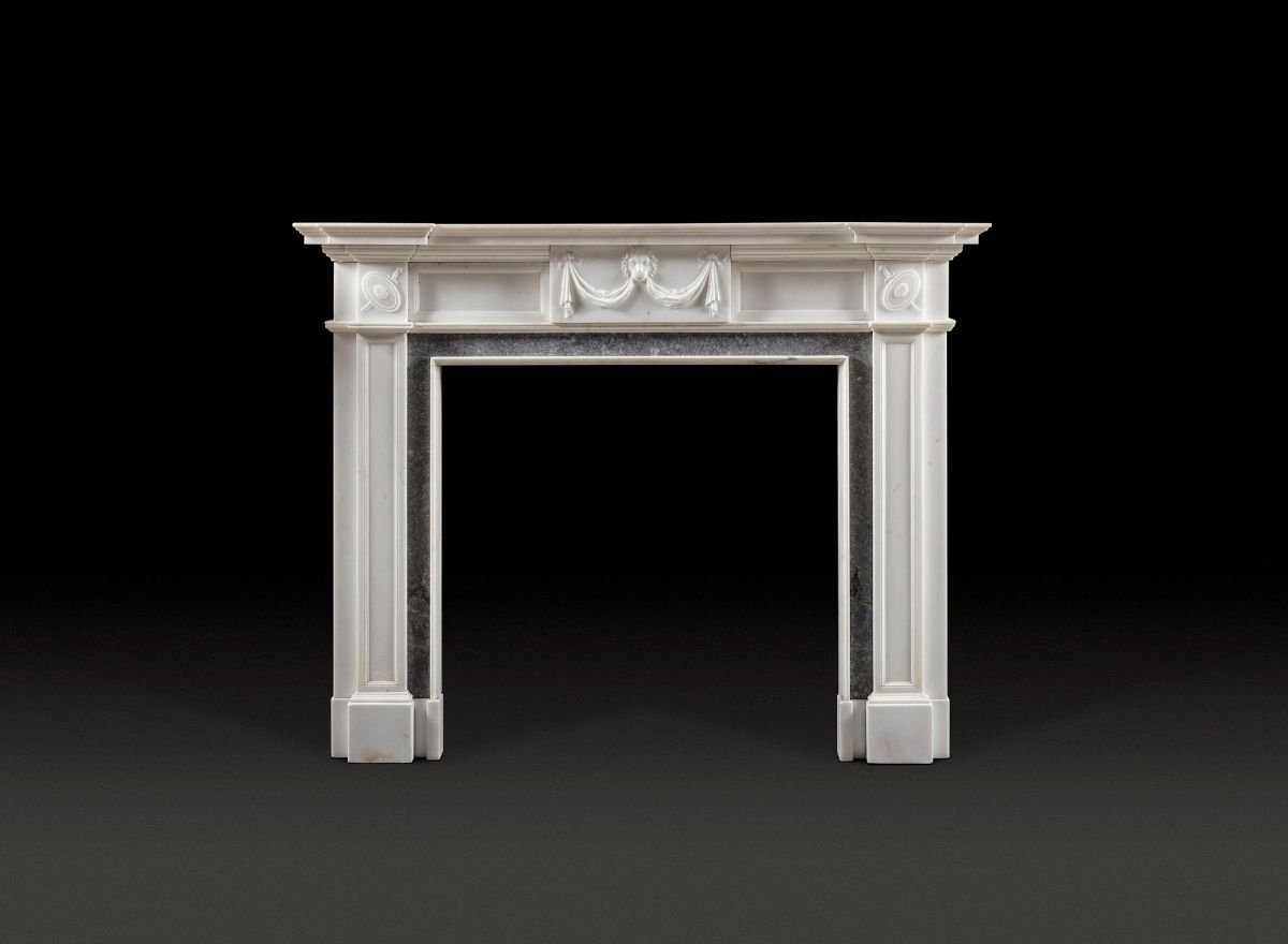 A Fine Architectural Statuary Marble Chimneypiece with Granite Inlay from the 18th Century