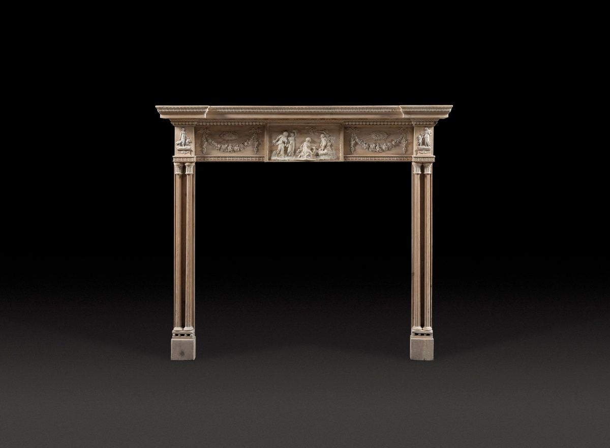 A Late 18th Century Scottish Neoclassical Pine and Gesso Chimneypiece.