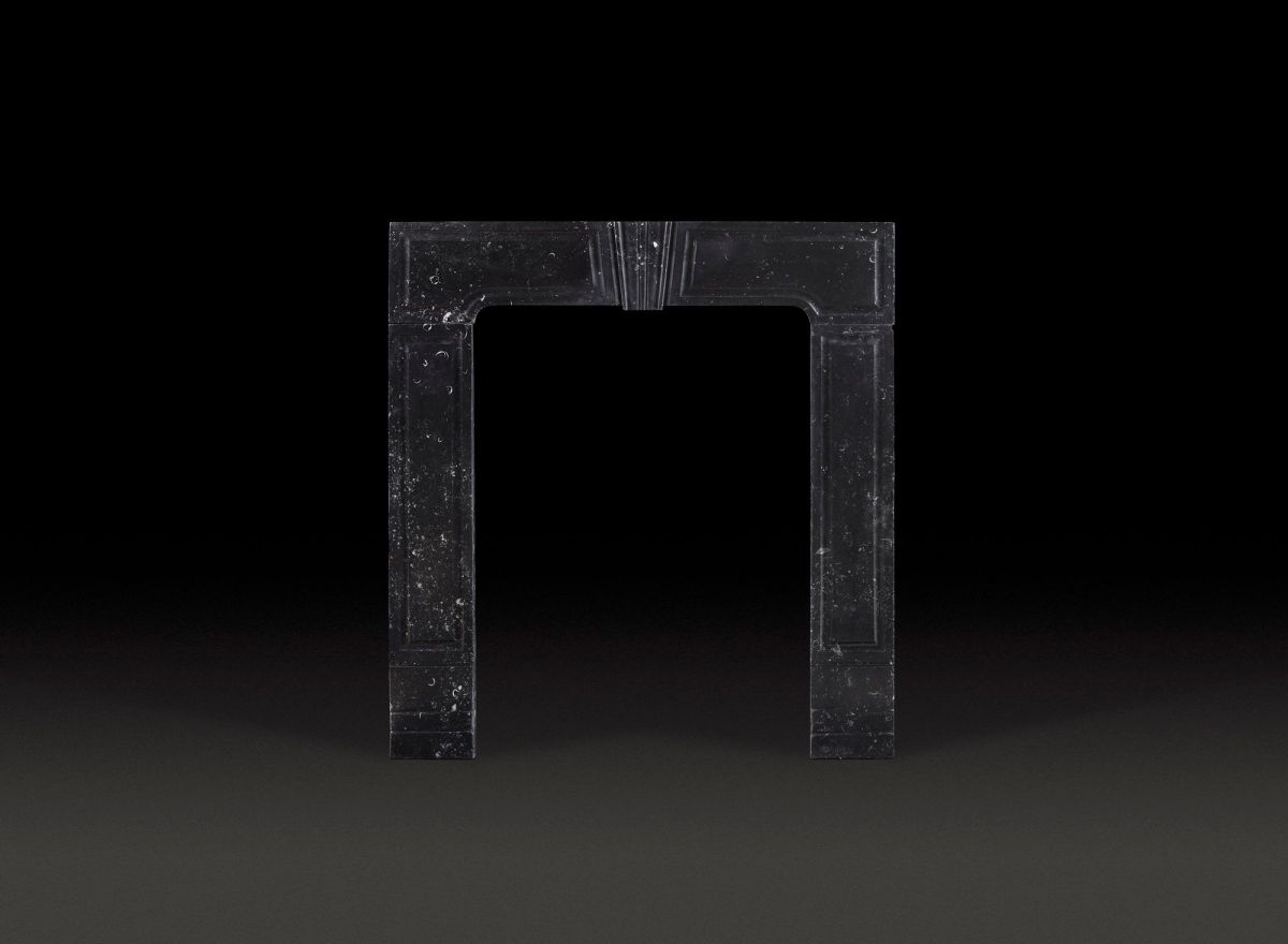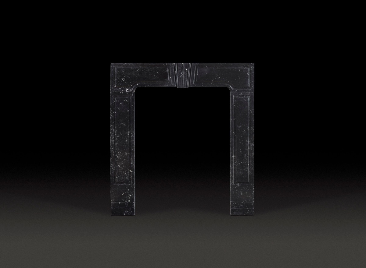 An Early 18th Century George I Irish Kilkenny Marble Frame Chimneypiece with a fluted keystone, flanked by fielded panels to the frieze, on original footblocks.
