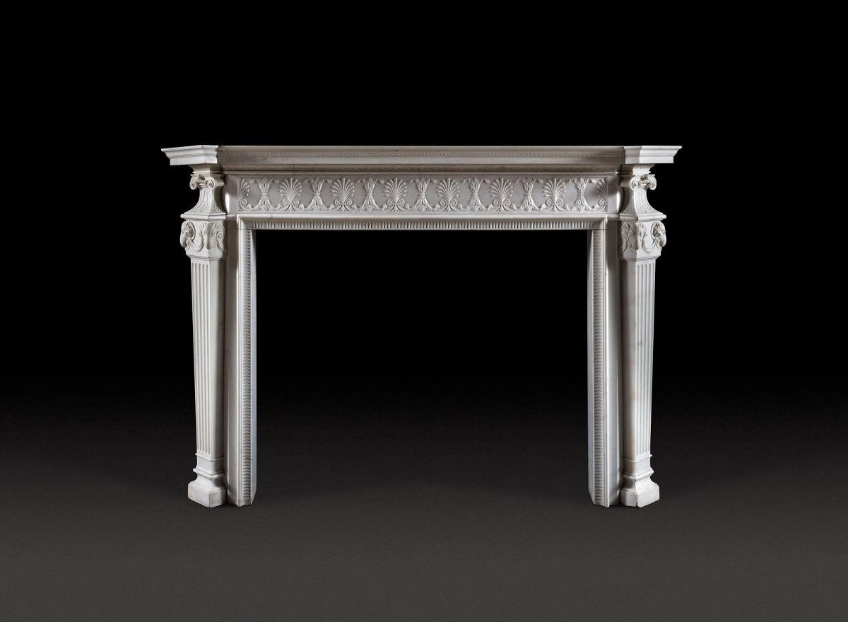 An Extremely Refined 18th Century Chimneypiece in White Statuary Marble by the Renowned Architect James Paine (1717–1789).