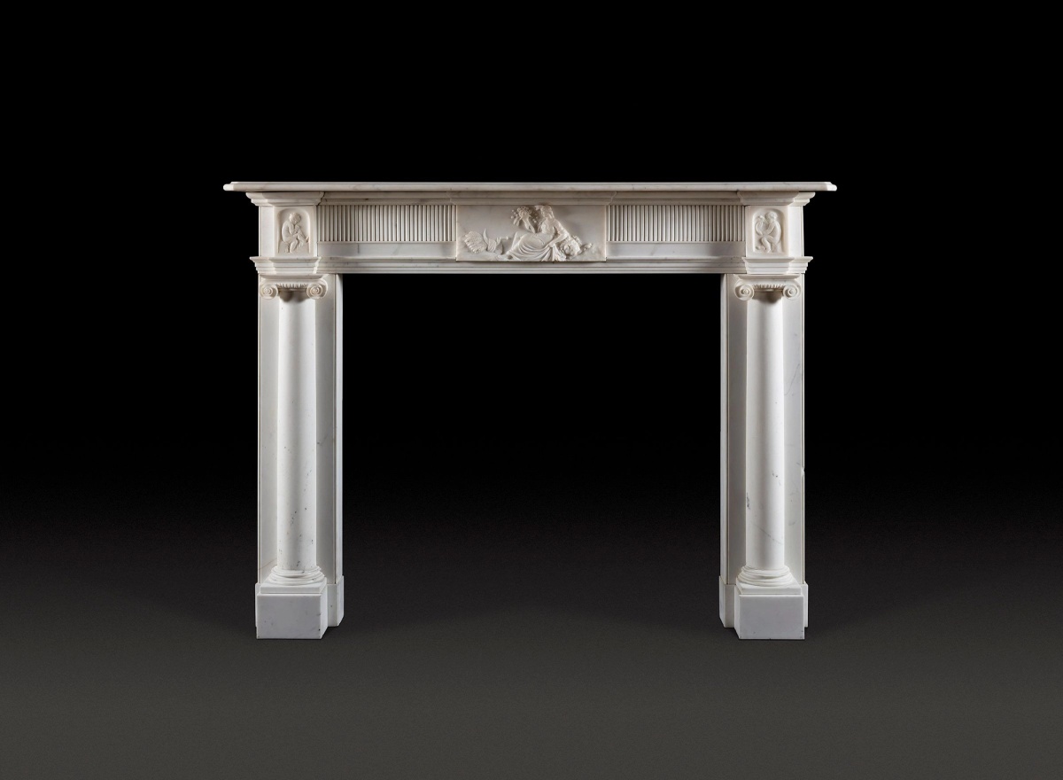 An Early Regency White Statuary Marble Chimneypiece with Ionic Column Jambs.