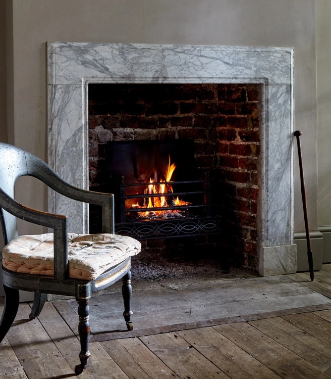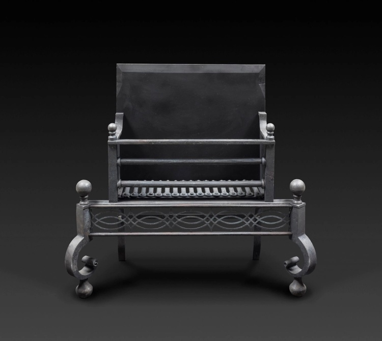 The overall form and scrolled foreleg of the Chancery is drawn in the manner of George III while the pierced apron-and-ball finials recall the vernacular style of the Arts and Crafts movement. This firebasket, finished here in a blackened finish, can be fitted with a gas or bio-ethanol fire systems as well as burning logs.