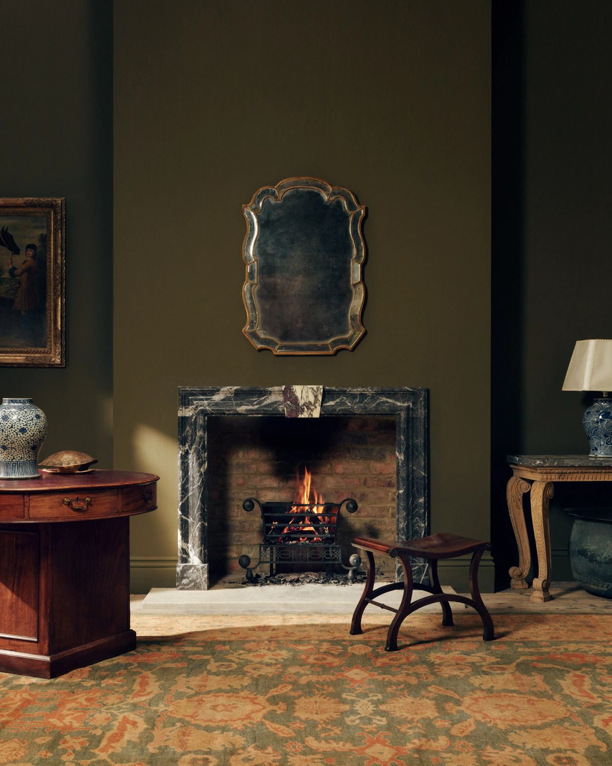 Carved from Grigio Carnico, a richly grained marble of pumice black and dove grey, this bolection chimneypiece is centred by a keystone in Breccia Medicea. Both the marble and the shape of this keystone offer a striking contrast against the rest of the chimneypiece. The fragments of ivory and ox-blood in the keystone, accentuate the light feathering of the Grigio Carnico and complete this handsome chimneypiece.