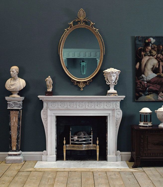 The wealth of carved detail on this neoclassical fireplace reflects the genius of Robert Adam. Adam built Lansdowne House, Berkley Square, for the Marquess of Bute. The distinguished sculptor Thomas Carter (d.1795), regarded as ‘the first statuary of the kingdom’, produced the original chimneypiece for the anteroom, which was designed by Adam. Financial extravagance eventually forced Bute to sell the half-finished house to Lord Shelburne, the then Prime Minister. In 1782, Shelburne and Benjamin Franklin drew up the treaty that led to the independence of the United States in the Round Room at Lansdowne House.