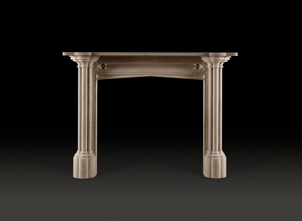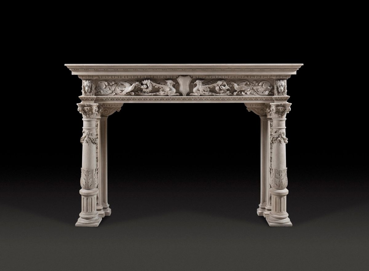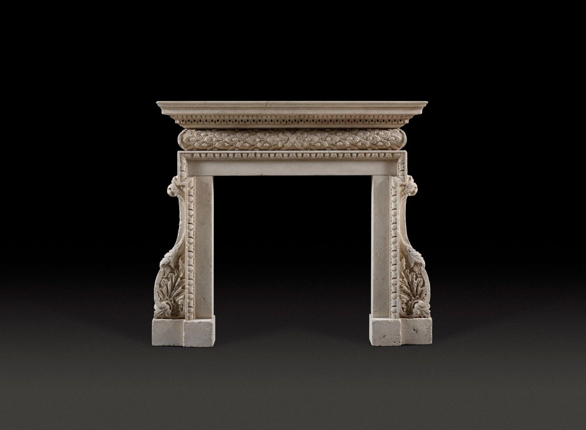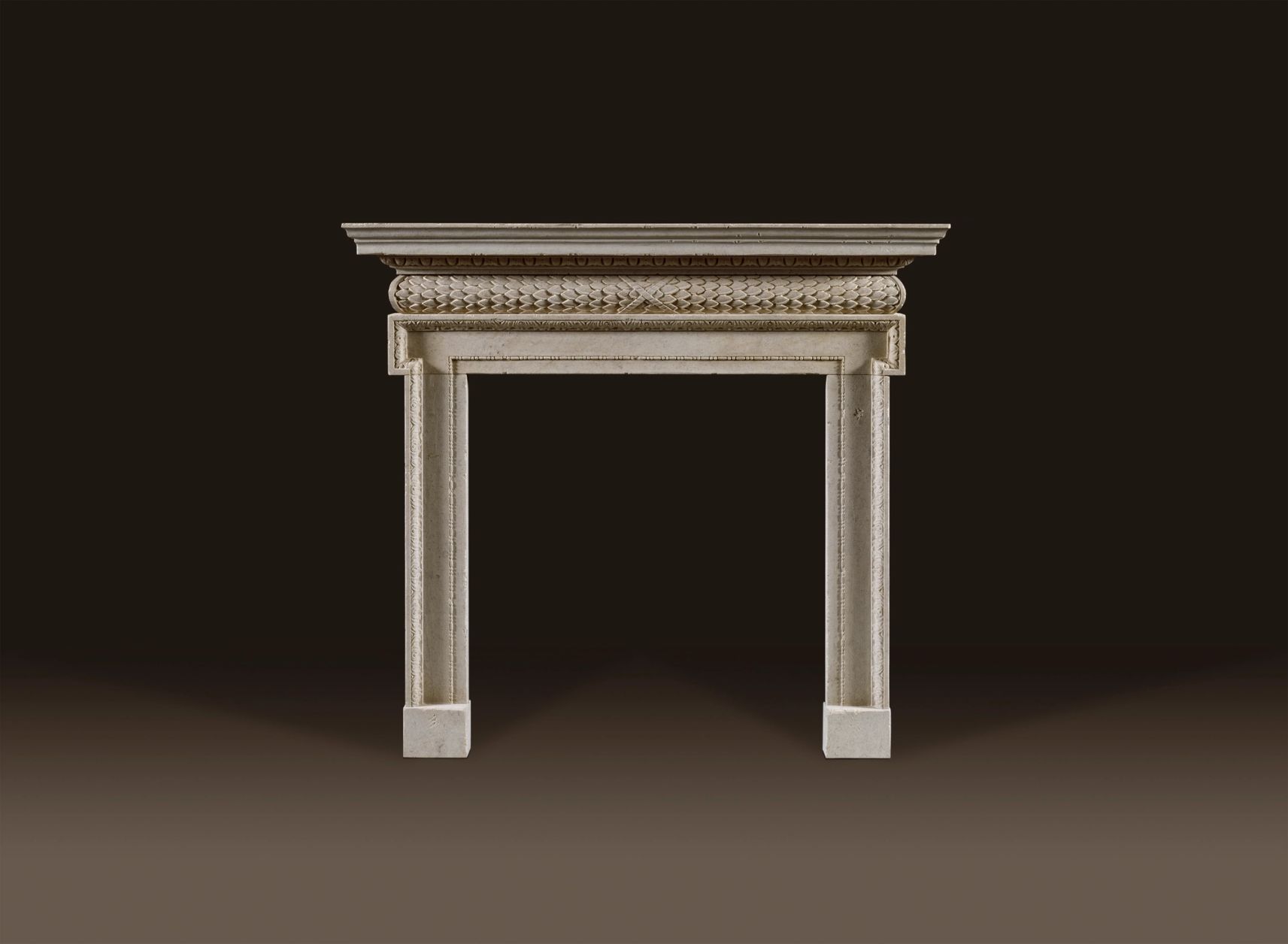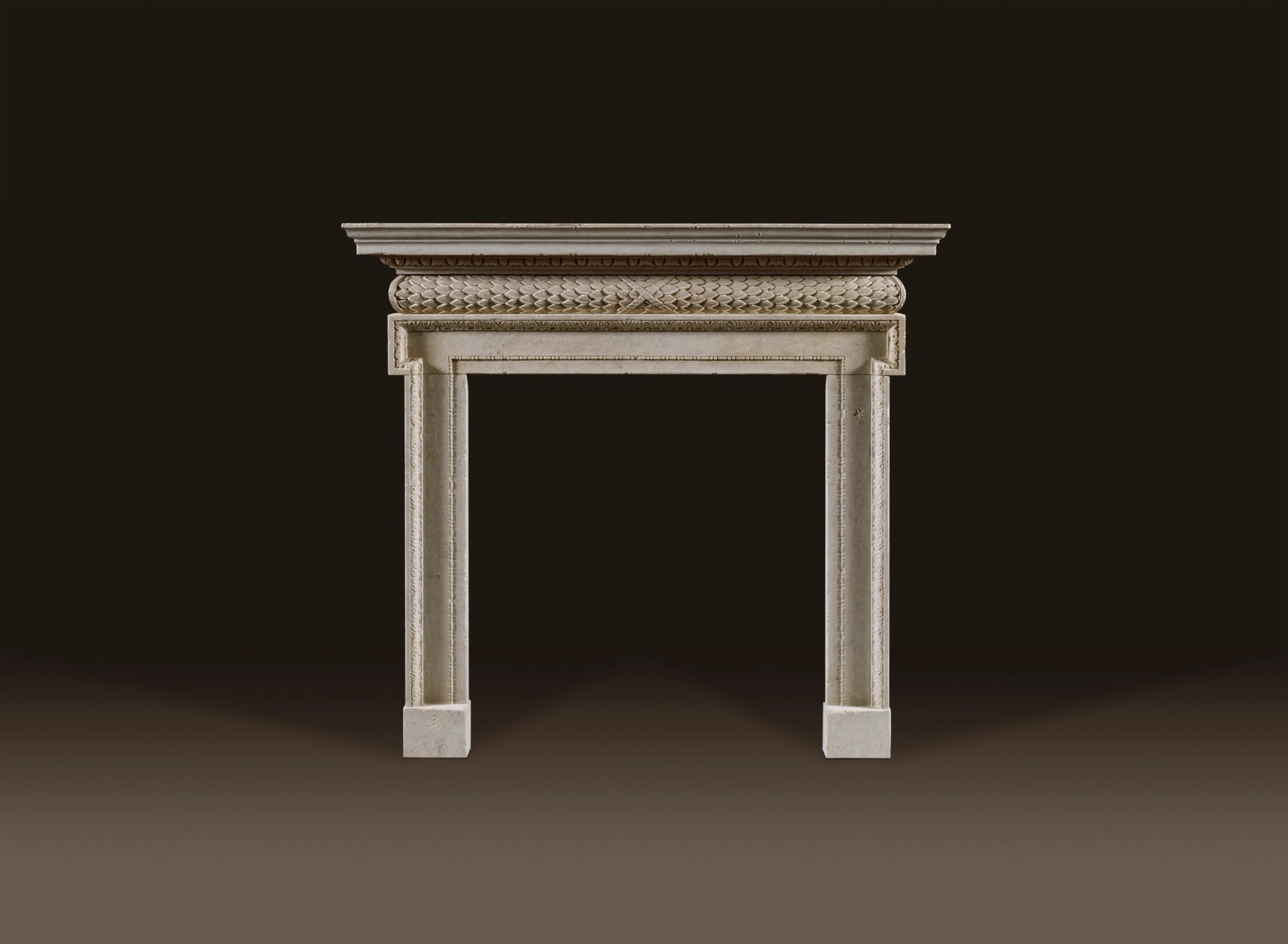Jamb works with two English limestones: Bath and Portland, each one exhibiting subtly different grain, texture, tone and figuration. Both respond well to the ageing techniques employed by Jamb’s masons in south London, whose work invests the stone with those marks of age that enable a Jamb fireplace to fit seamlessly into any environment. Please enquire through the website for a sample.