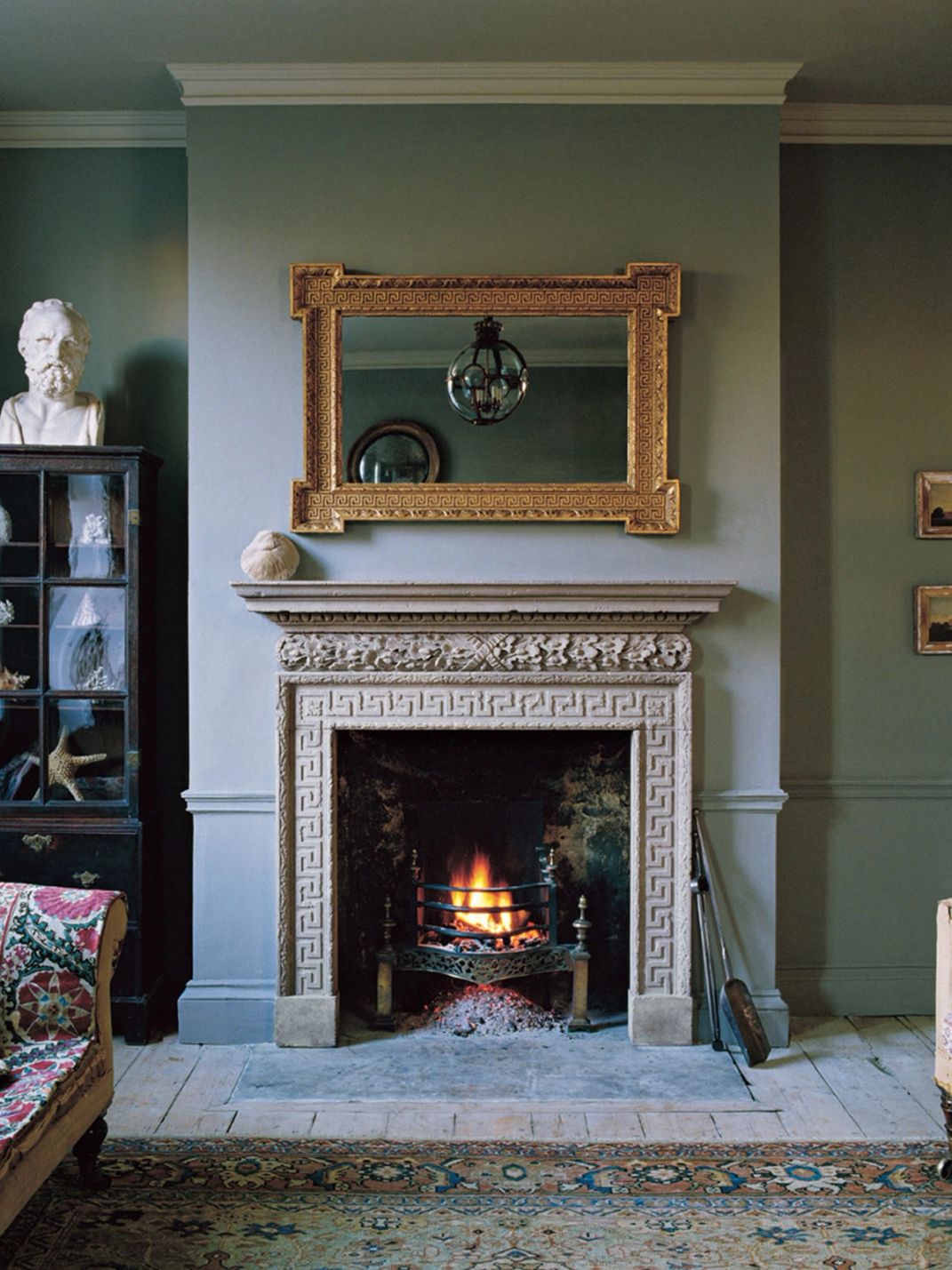 The barrel shaped frieze of this mid-18th century designed stone fireplace features garlands of oak leaves and acorns tied by ribbon, representing peace, prosperity and longevity – carved to celebrate the peace treaty of Aix La Chapelle in 1748. The elegant opening is surrounded by flat panels which contrast with the shaped frieze above, decorated with a continuous double Greek key fret. The in grounds and out grounds sport delicate foliage, while the moulded shelf boasts intricate egg and dart.