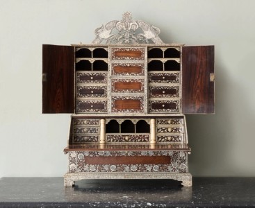 Jamb specialises in the sale and acquisition of the finest 18th- and 19th-century English and Irish country house furniture. Whether it’s a magnificent pair of tall Queen Anne red verre eglomisé pier mirrors or an intricately carved, early 19th-century blue scagliola marble top console table, Jamb’s eclectic inventory of antiques is centred on the romance of surface, the passing of time, authenticity, a dedication to conservation not restoration and embracing the life of each piece.