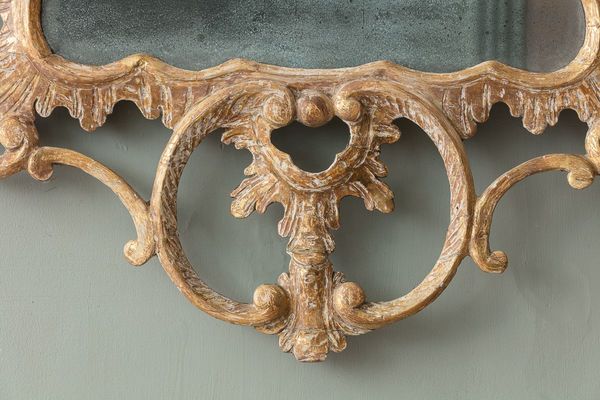 With extensive c-scroll and acanthus finely carved detailing, and gently shaped giltwood frame, the surface carefully dry stripped to reveal the original gilt remnants showing an original and soft ‘sleepy’ patina, enclosing a misty and foxed mercury plate.