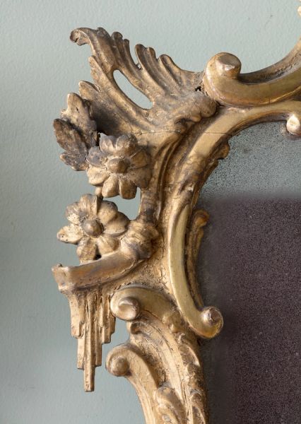 With a beautifully soft lustre to the giltwood surface, with twisting, vine like candle arms, and soft patination to the aged mirror plates (one later replacement).