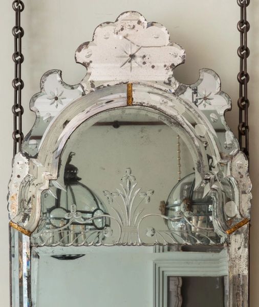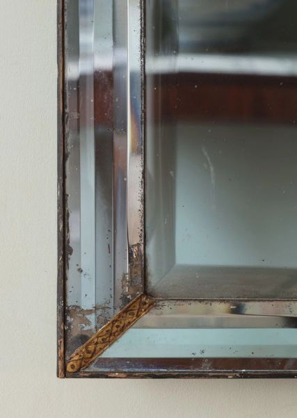 This type of bevelled glass was the most opulent form of framing in the late 17th, early 18th centuries, and typically would have hung in positions such as between pier windows, lightly tilted or ‘kited’ into the room, as was the fashion. A gentle and intricate detail that underlines the quality of this glass is the multiple lined bevels of the border glass plates that would have had an atmospheric coruscating quality by flickering candlelight, emphasising the intricate shaping and quiet stillness of form.