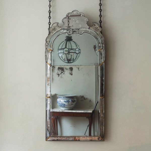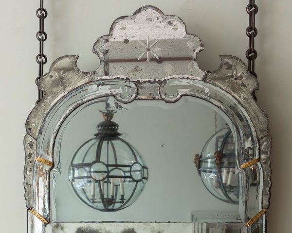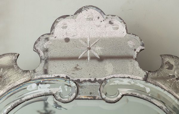 This type of bevelled glass was the most opulent form of framing in the late 17th, early 18th centuries, and typically would have hung in positions such as between pier windows, lightly tilted or ‘kited’ into the room, as was the fashion. A gentle and intricate detail that underlines the quality of this glass is the multiple lined bevels of the border glass plates that would have had an atmospheric coruscating quality by flickering candlelight, emphasising the intricate shaping and quiet stillness of form.