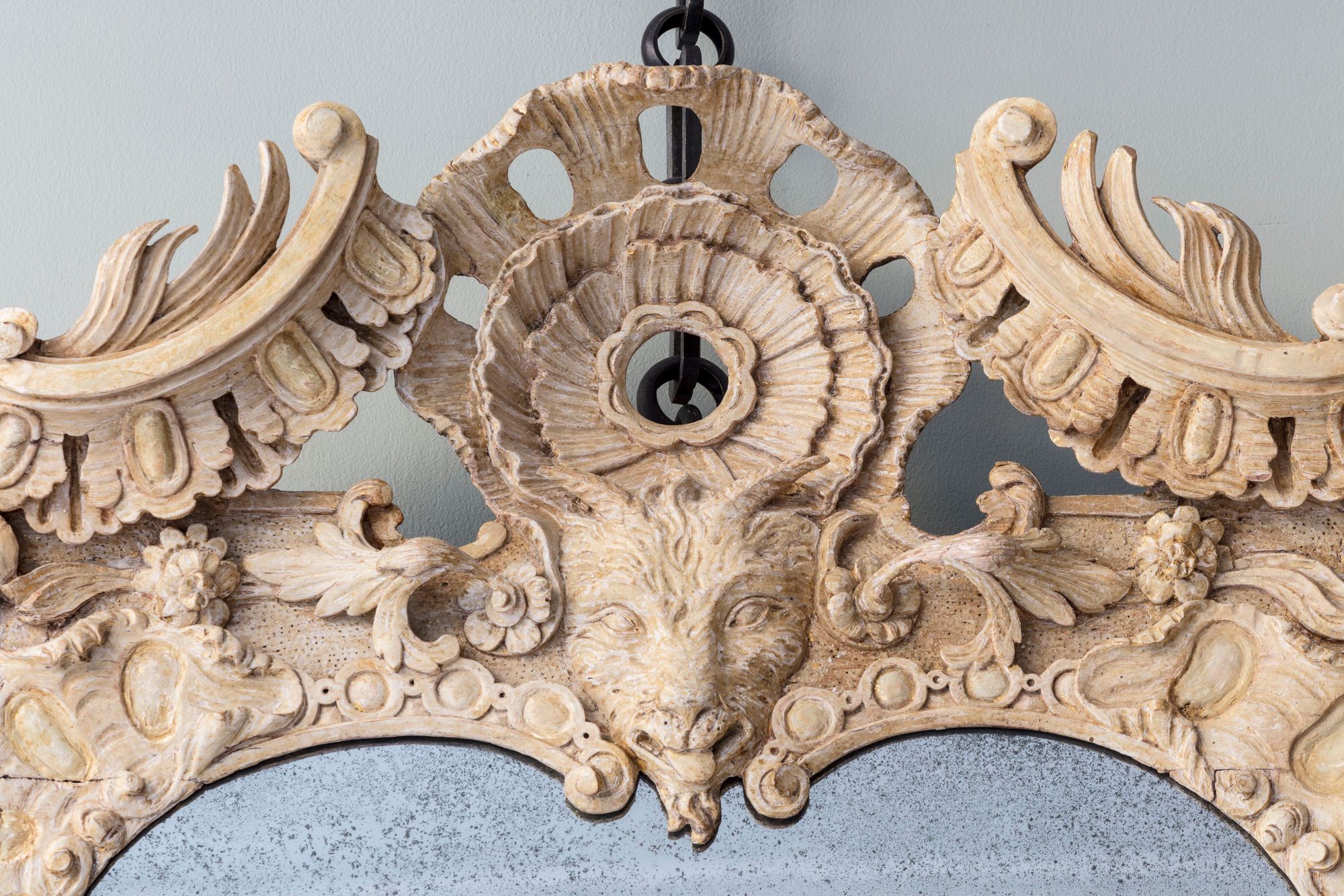 An Exceptional Rococo Carved Giltwood Pier Mirror with Central Goat Mask
