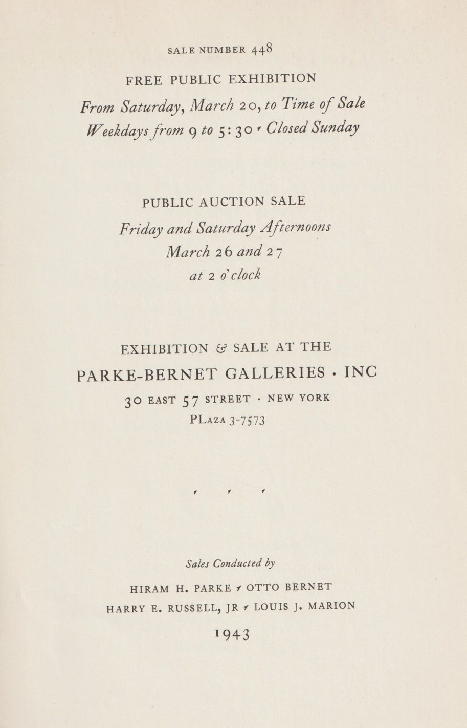 Sold at Parke Bernet, 27th of March 1943, achieving the highest price in the sale of $875, as part of the retirement sale of the great American furniture dealer, Daniel Farr.