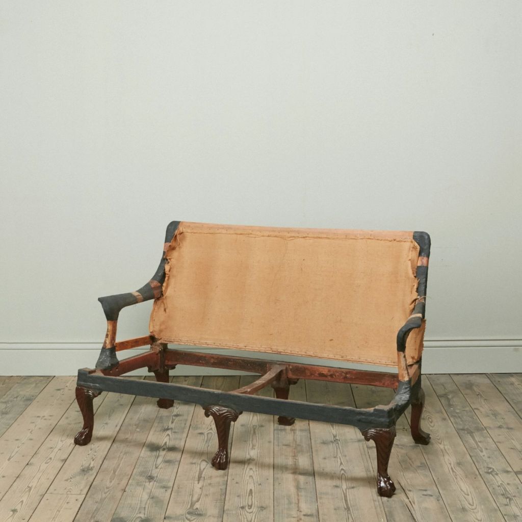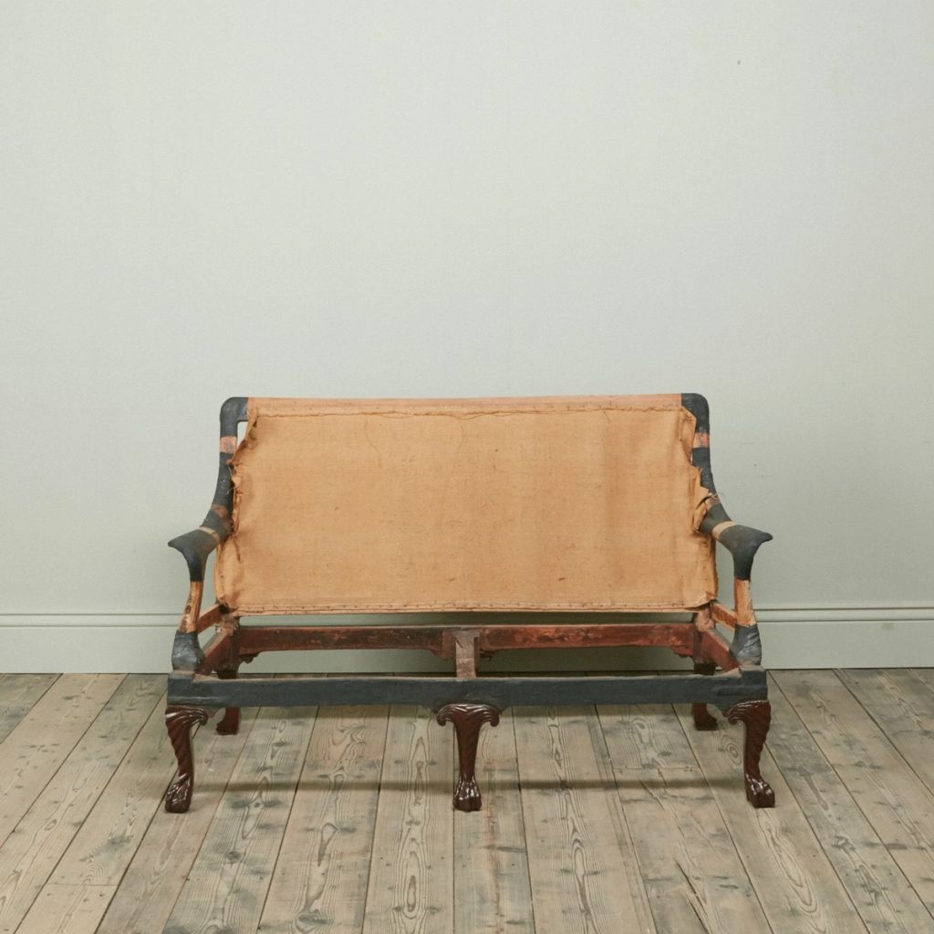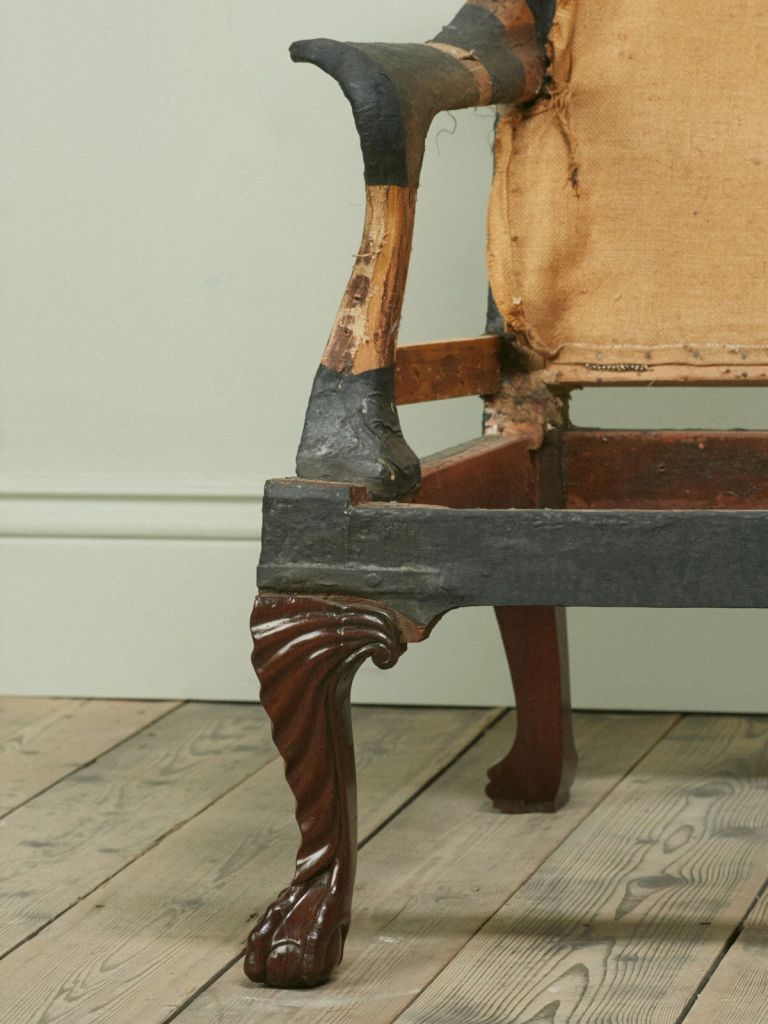 Now with preparatory upholstery, covered in a raw hessian, with further photographs of frame for reference.