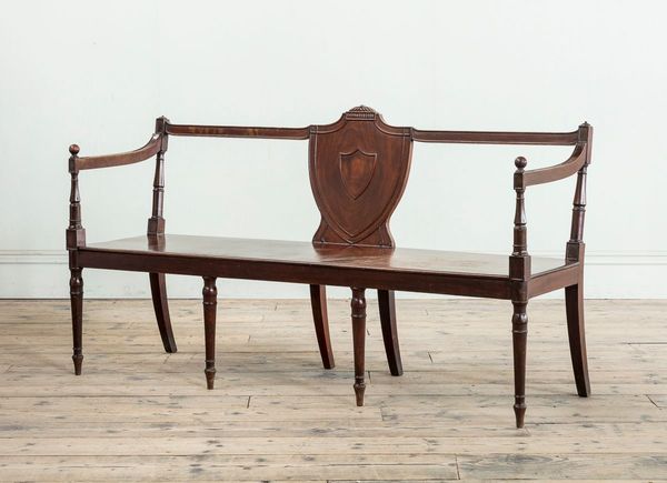 A George III Mahogany Hall Bench, with Central Shield