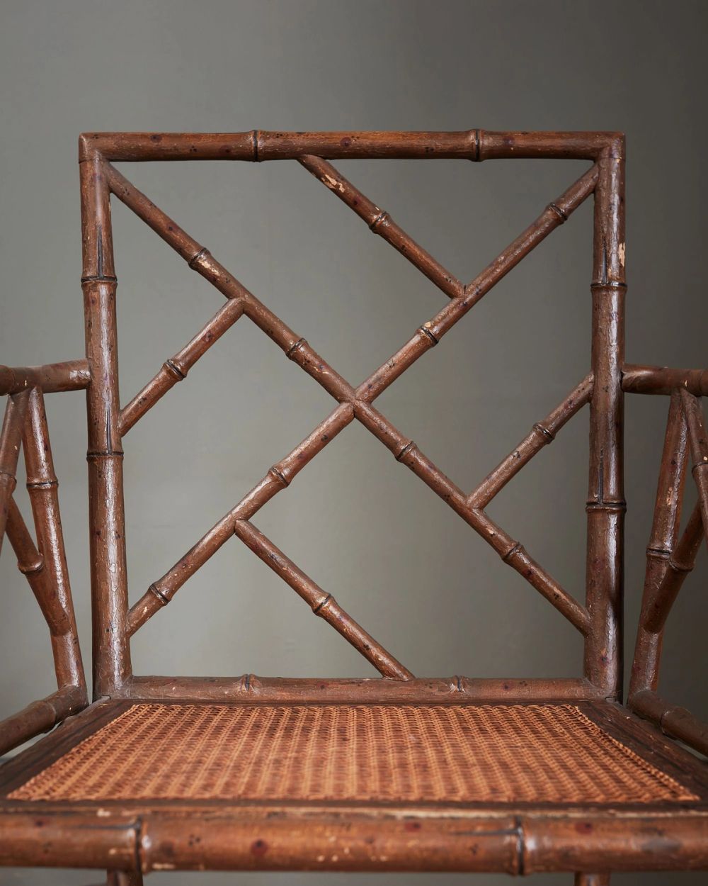 A remarkably similar set was made for Shardeloes, by Linnell, in 1767 which furthers this visual attirbution; invoiced as ten ‘neat bamboo chairs with loose seats’ supplied for William Drake, Shardeloes, Buckinghamshire.