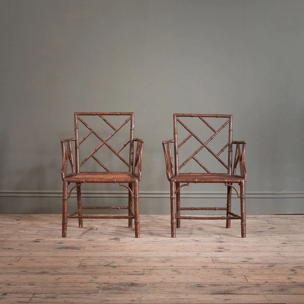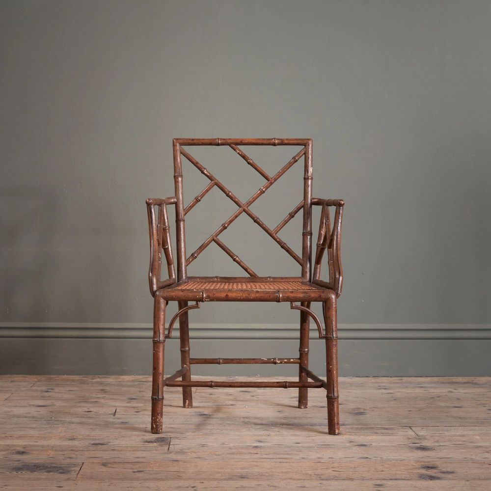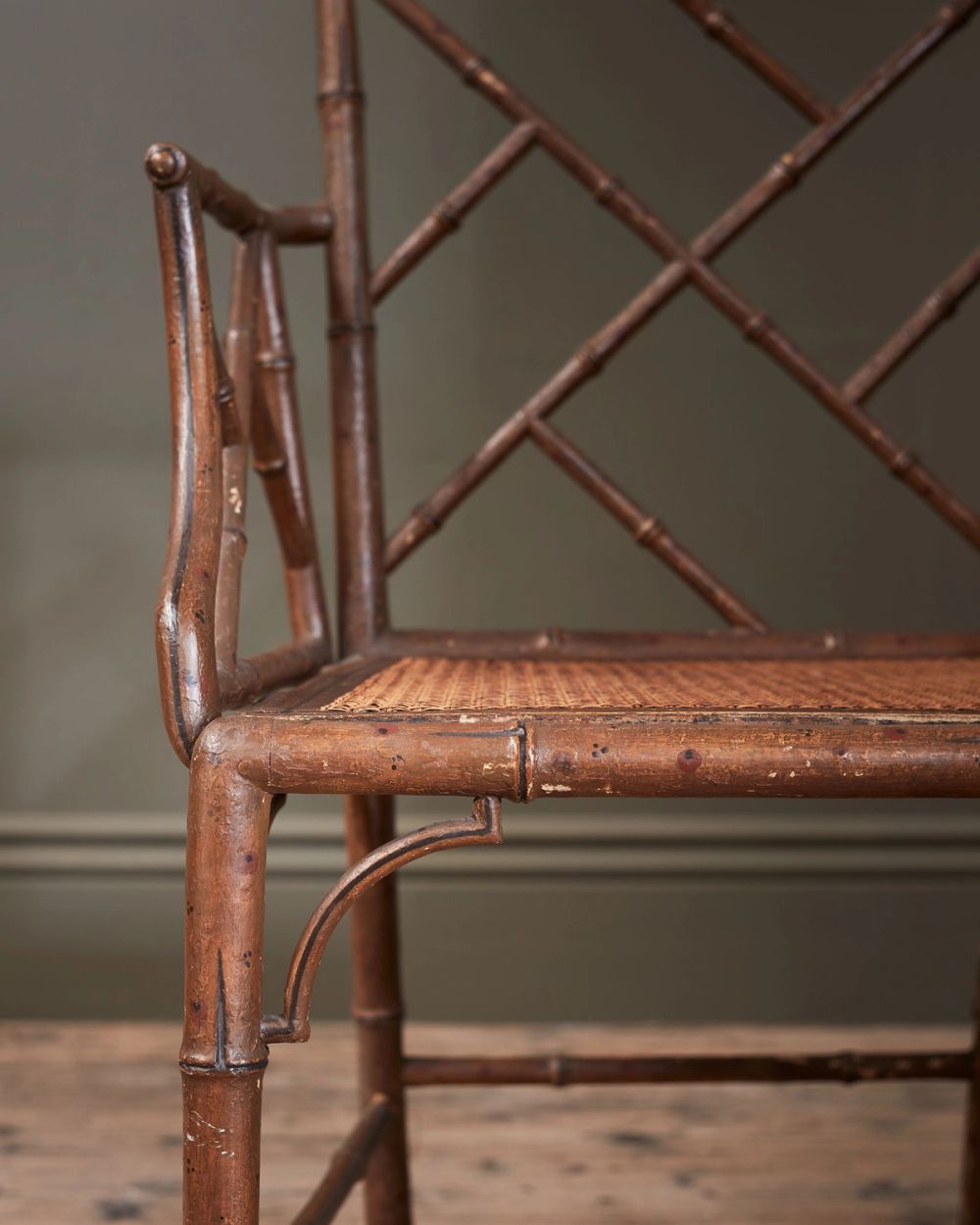 A Pair of Late 18th Century Faux Bamboo Armchairs, with Caned Drop in Seats