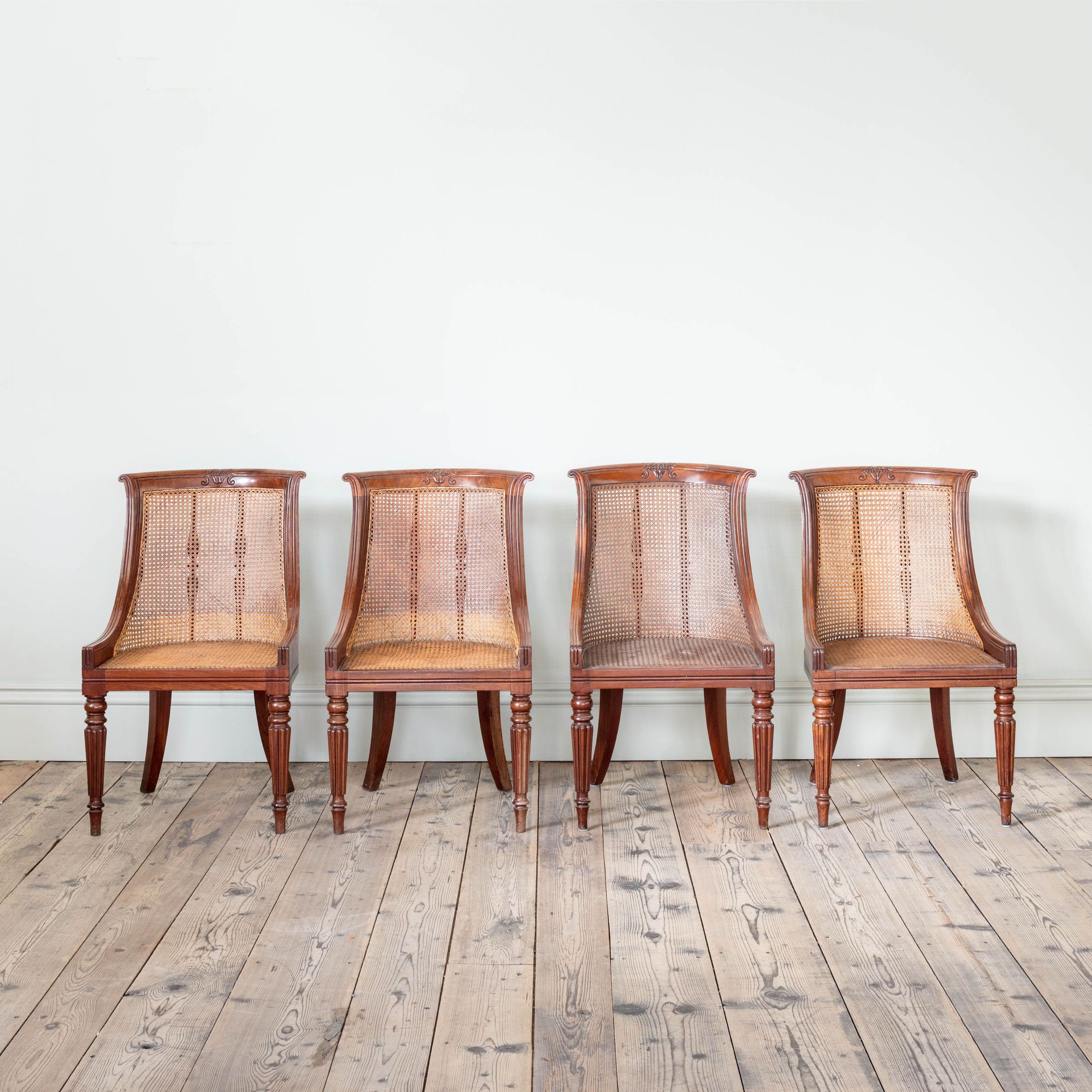 A Set of Four Regency Mahogany Caned Dining Chairs