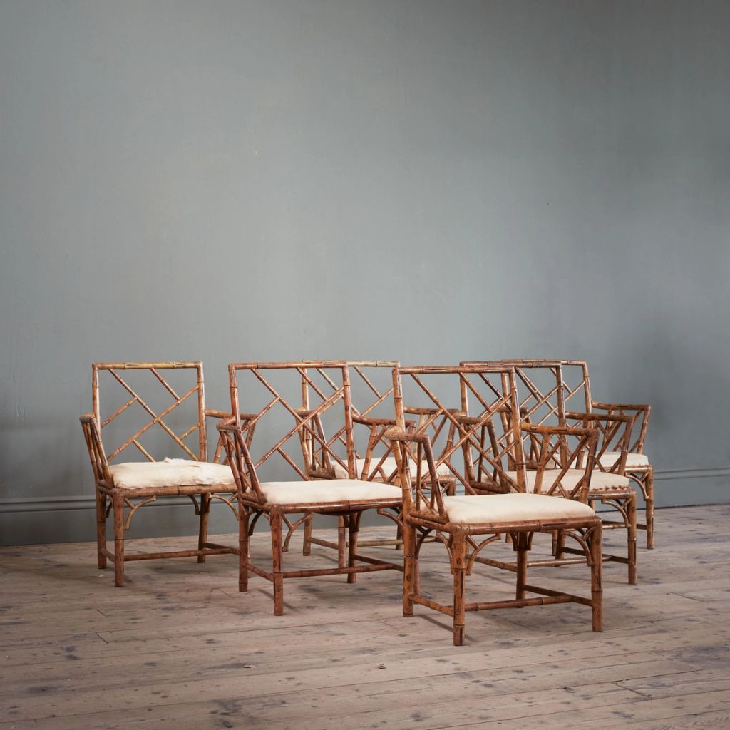 A Set of Six Late 18th Century Bamboo ‘Cockpen’ Armchairs, with Drop in Upholstered Seats