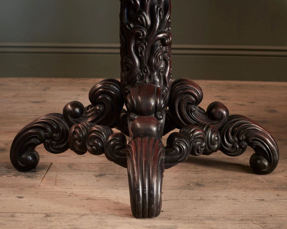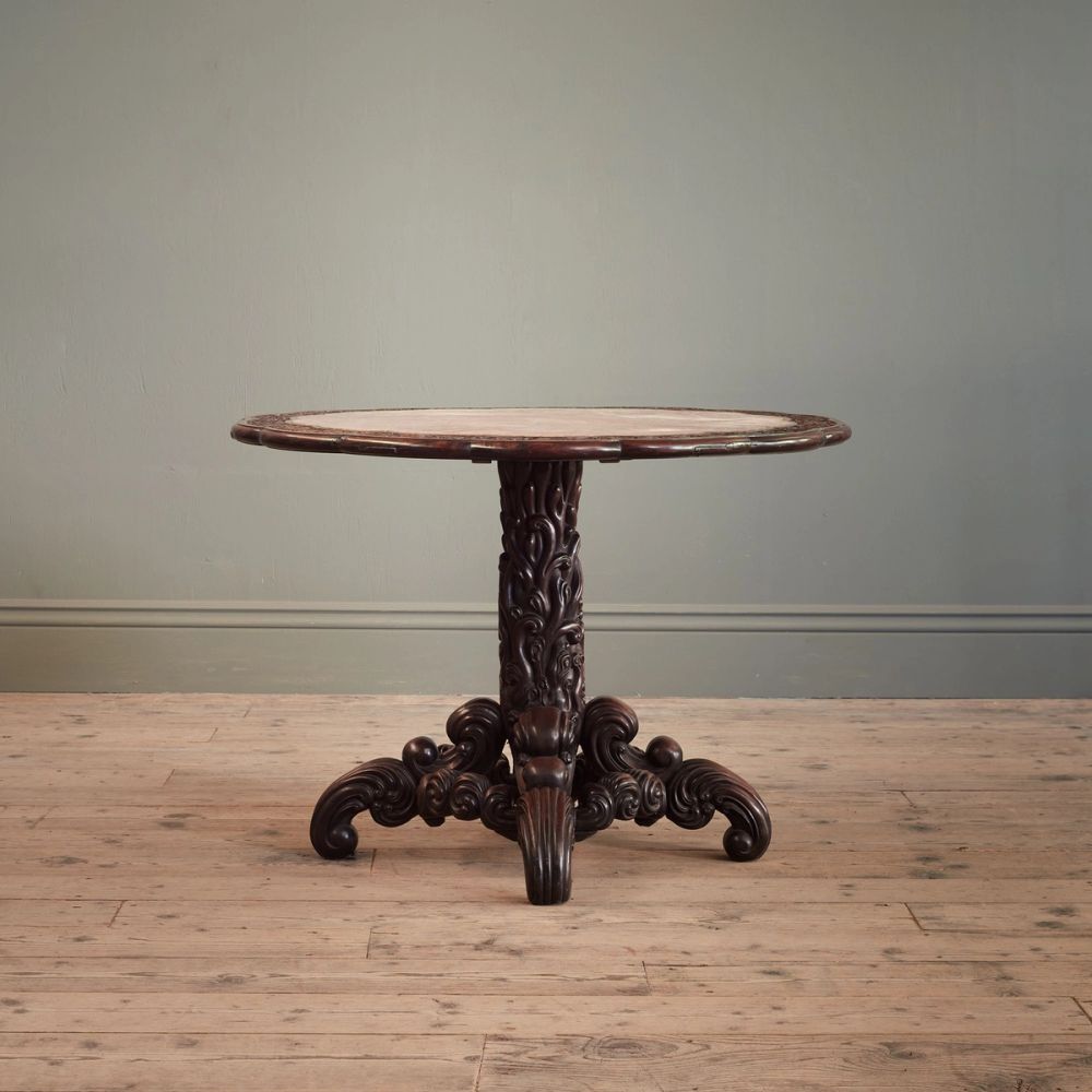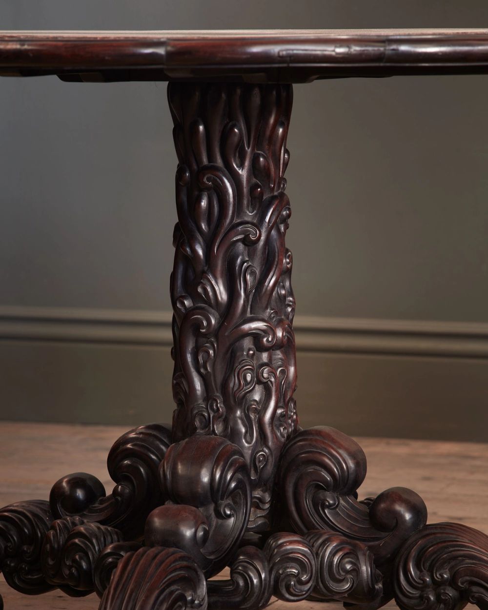 A 19th Century Chinese Carved Rosewood Centre Table, with inset Rose Marble Top