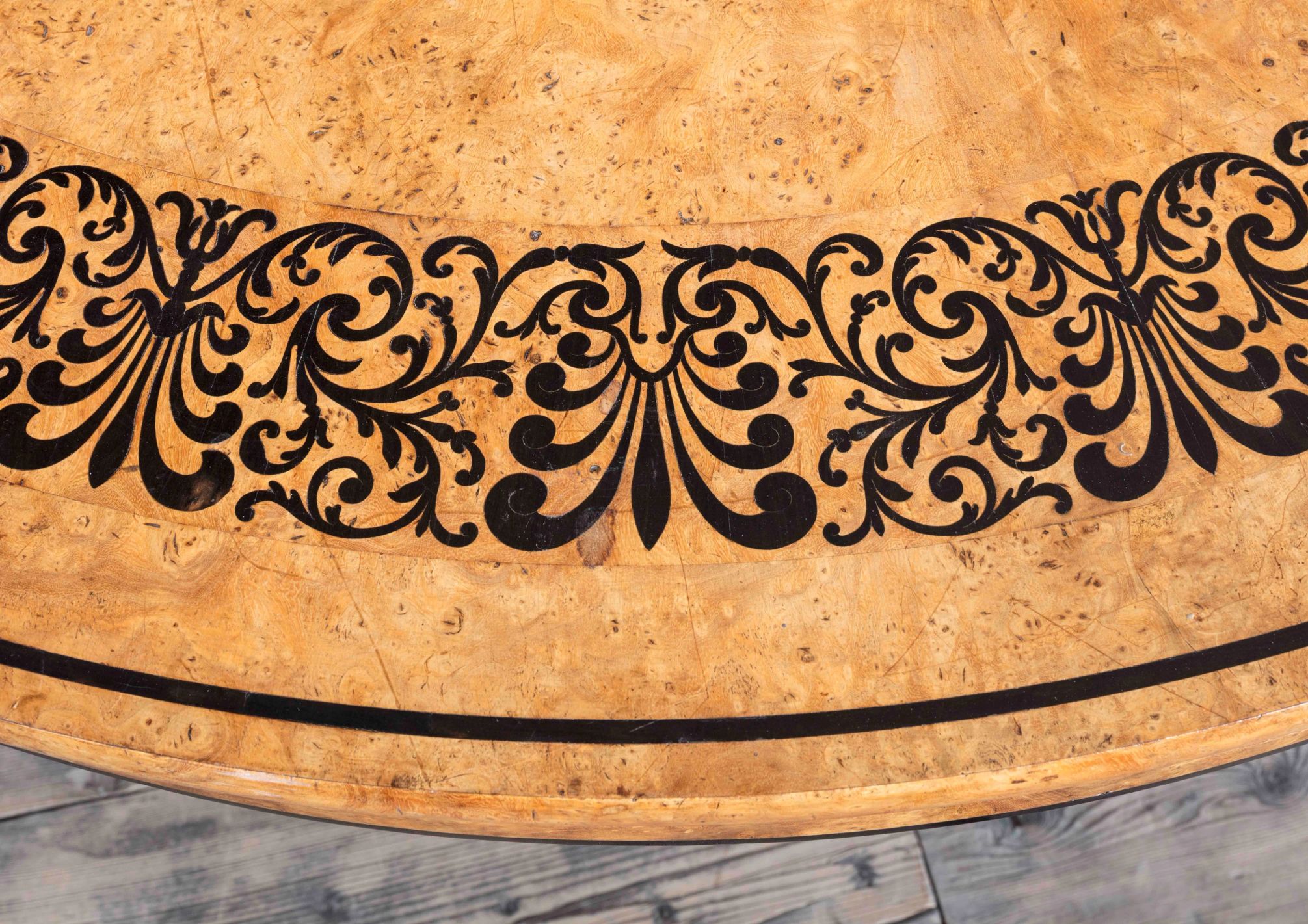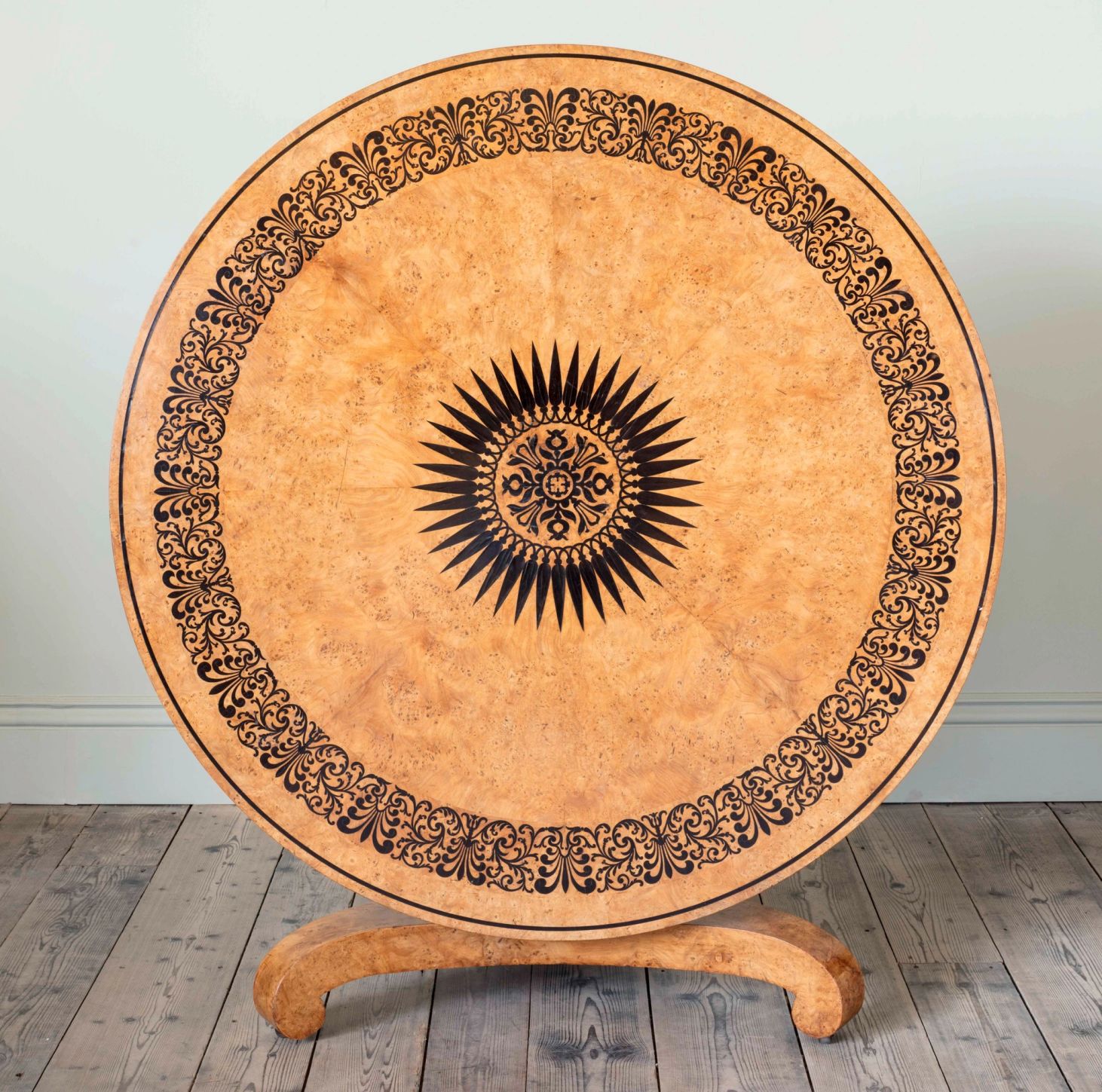 A Burr Elm and Ebony Inlay Circular Centre Table