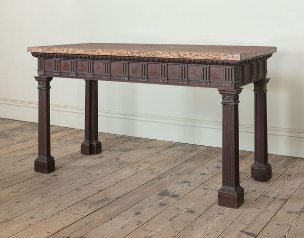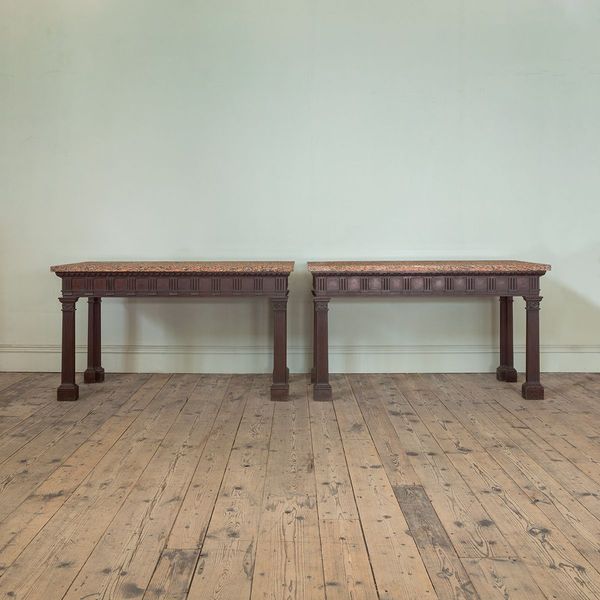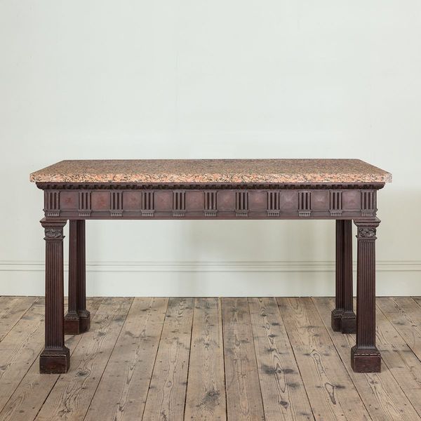 The use of Egyptian granite for the tops of the tables is very significant. Just like Egyptian porphyry, granite was used for monumental works of sculpture and architecture in Egypt and, as a result, the materials were highly sought-after by the Romans who re used much of the material after their conquest of Egypt. Subsequently granite of this sort was a valuable commodity to any grand tourist in the 18th Century and it is likely that the tops were made in Italy and the table bases were created to support them when they had been transported to England. These tables were clearly designed by, and for, true connoisseurs of this type of furniture and the original owners would no doubt have been fully aware of the significance of the tops and their links to ancient civilisations.