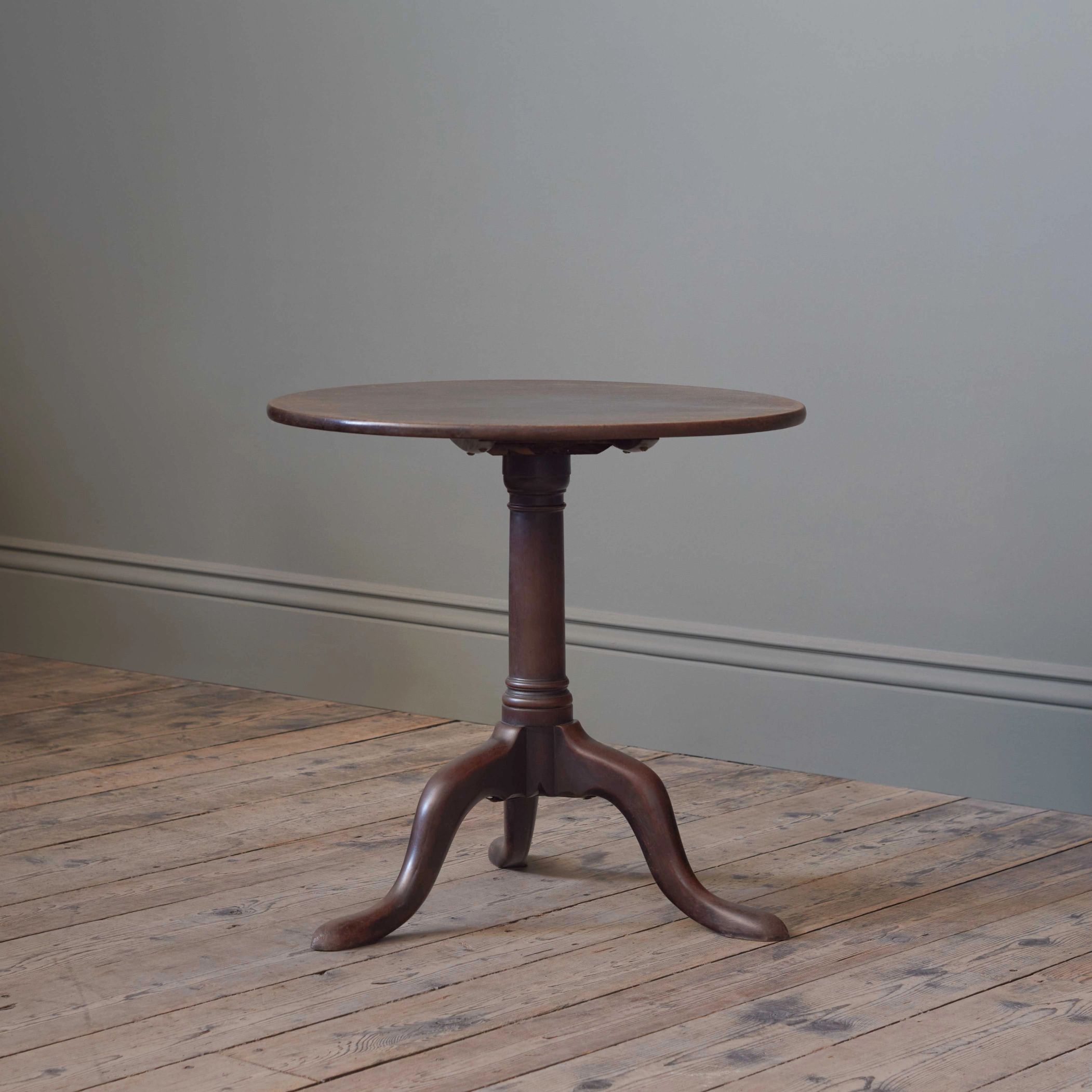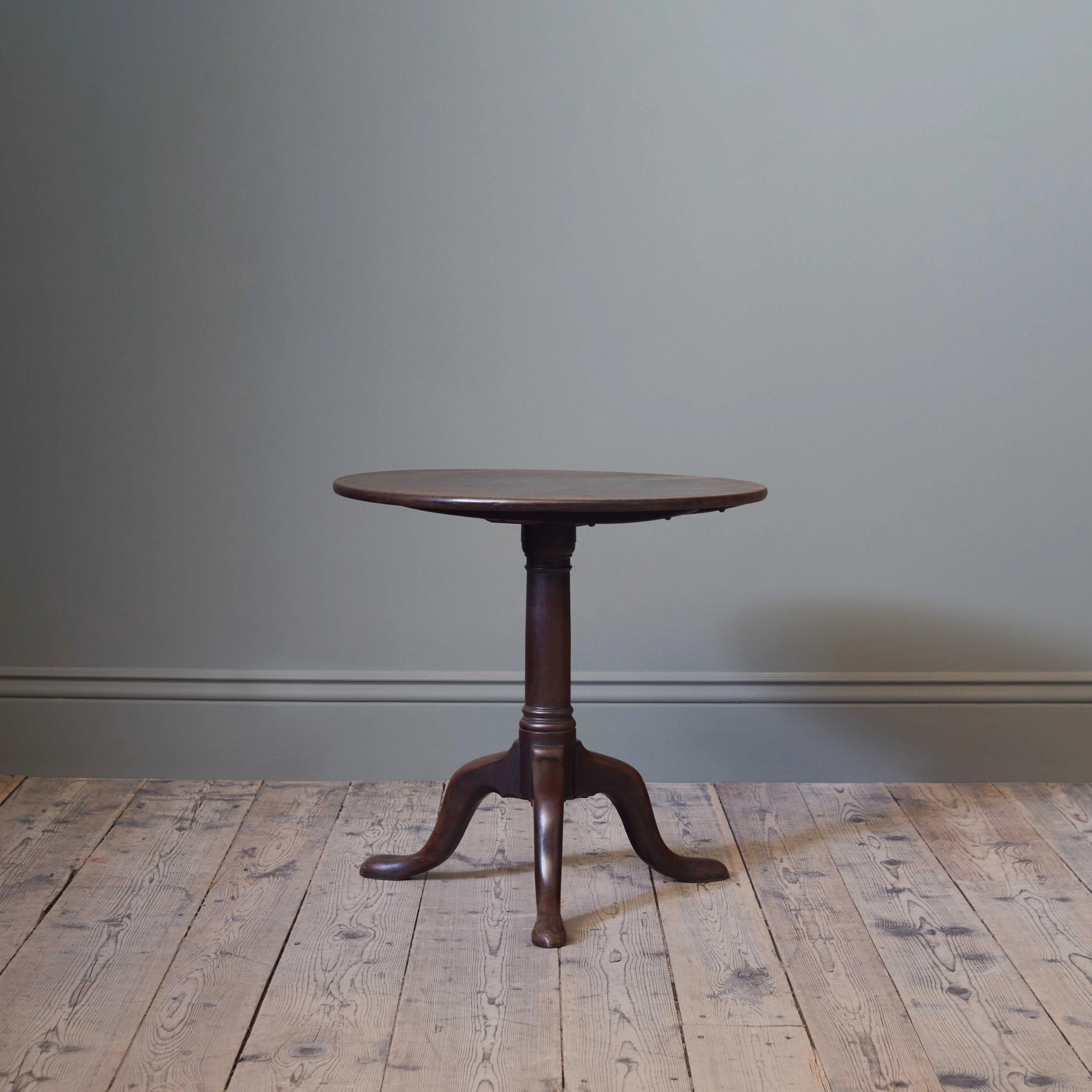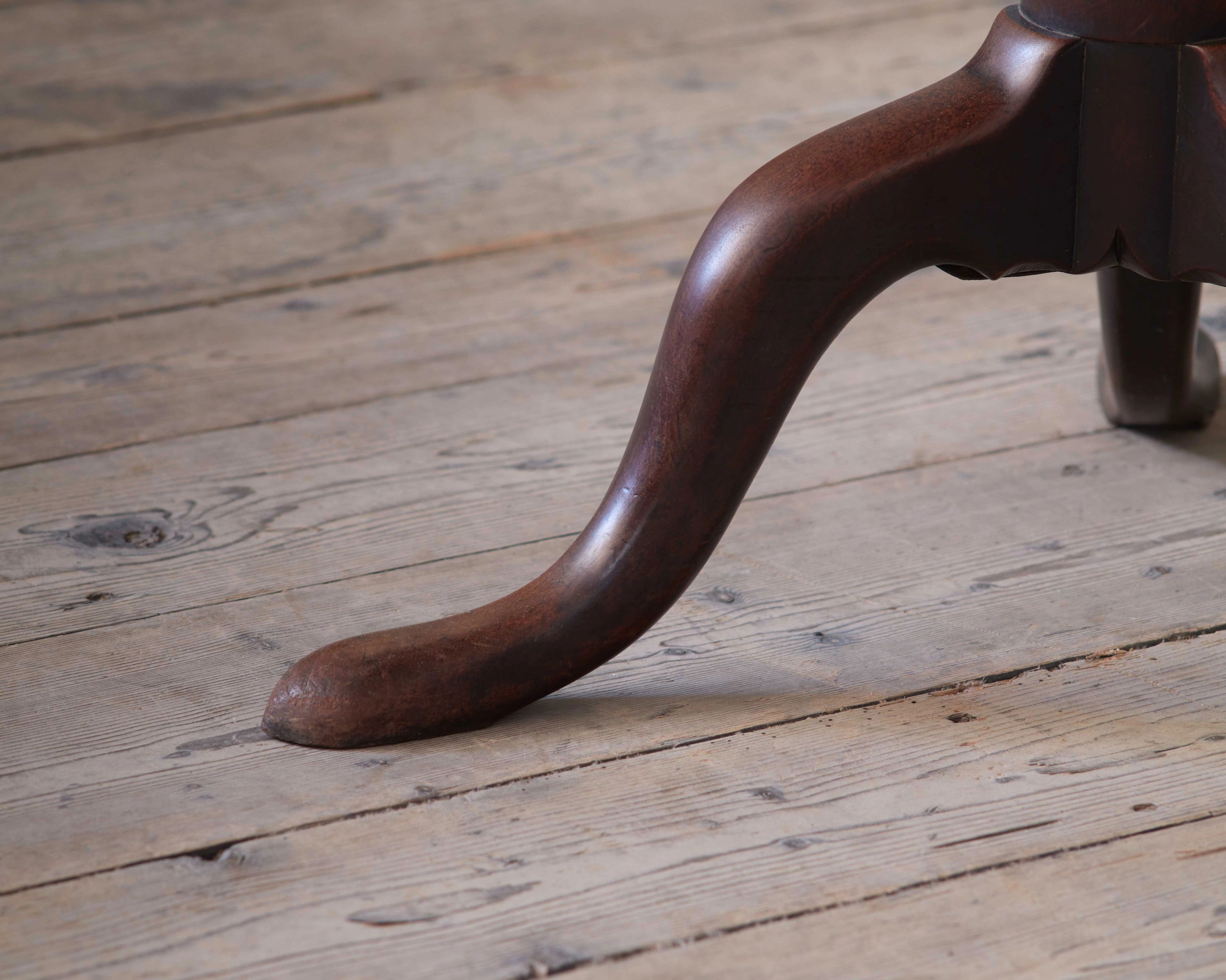 The circular tilt top with exceptional patination, on sturdy central column, on wonderfully characteristic and thickly set cabriole legs. Overall dry, and sleepy surface patina.