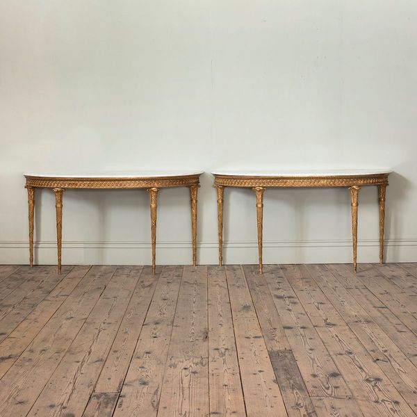 A Pair of George III Carved Giltwood Demi Lune Tables