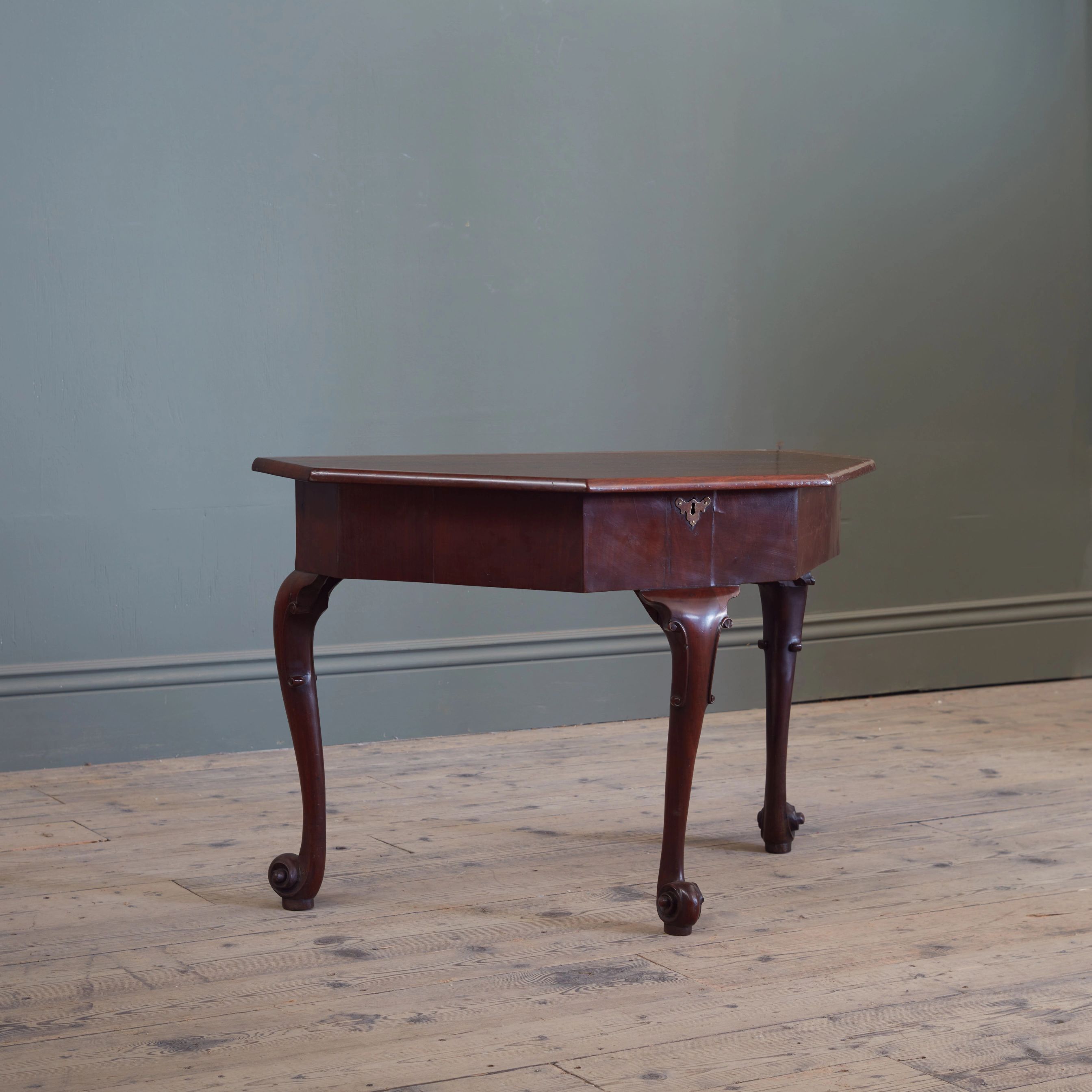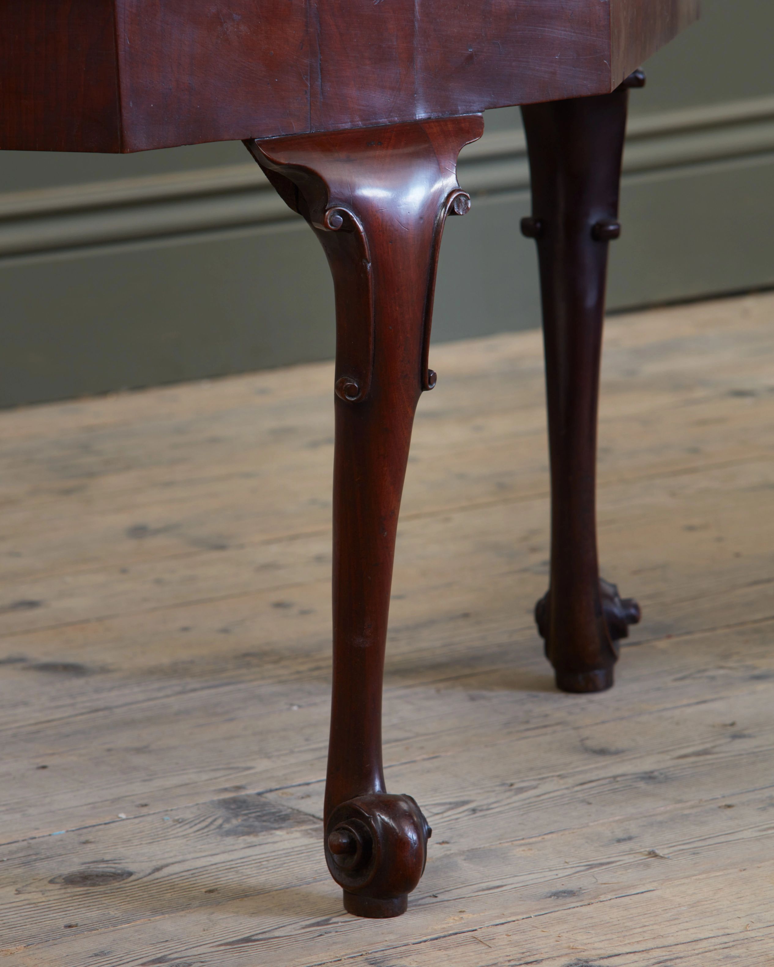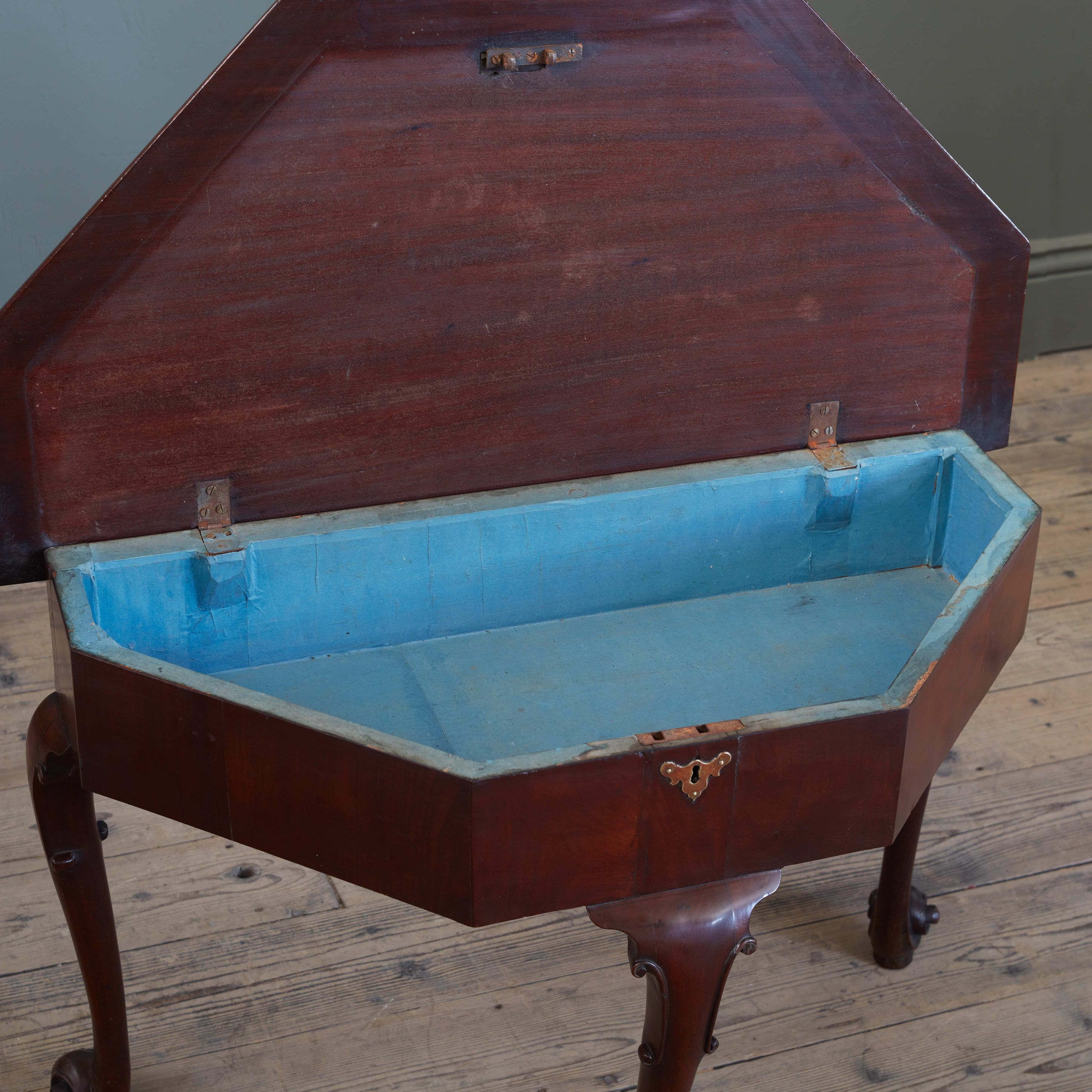 Of unusual form, with ‘lift lid’ tops to reveal beautiful chalky blue paper lined interiors, with cabriole legs on scroll feet. Handsome proportions with strong posture.