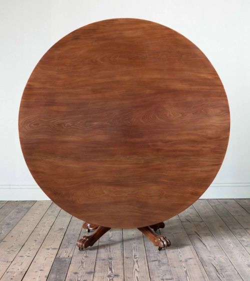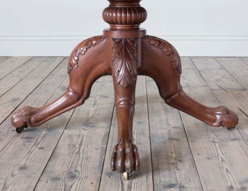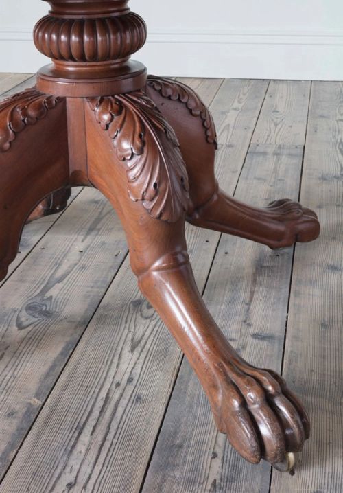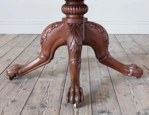 With circular reeded top above a turned and reeded column on extraordinary ancanthus carved and animalistic legs and paw feet.