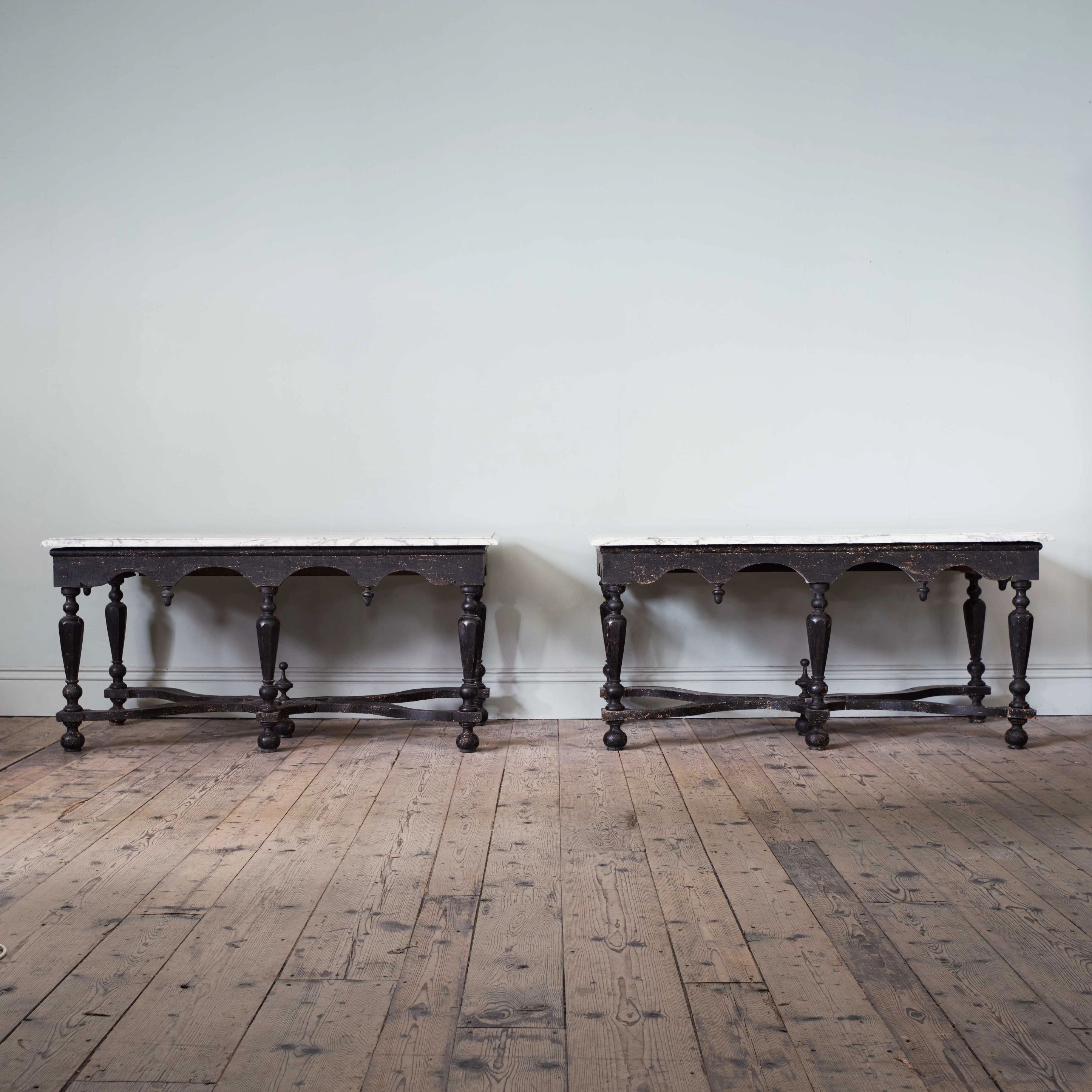 An Extremely Rare Pair of William and Mary Side Tables, with original Carrara Marble Tops