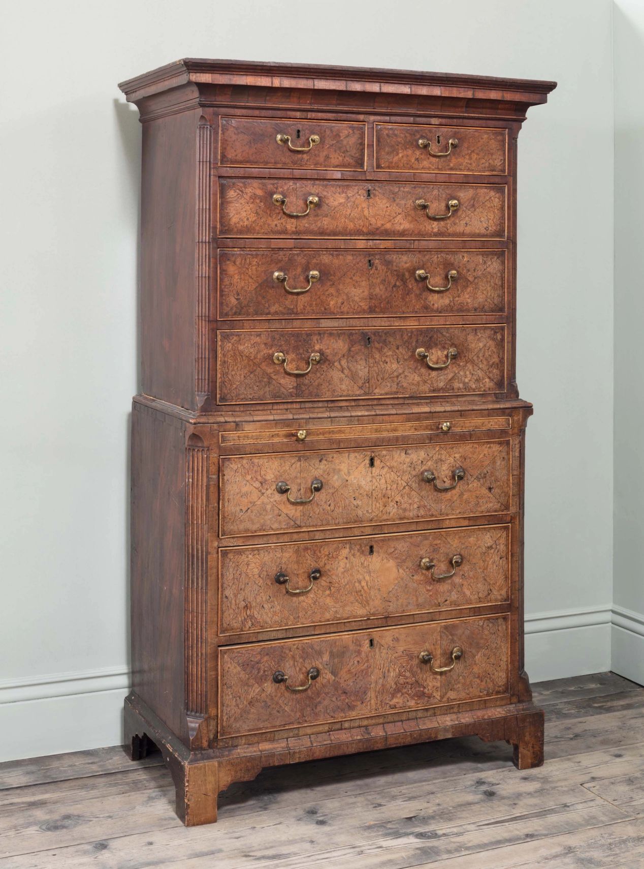An Early George III Burr Yew Chest on Chest