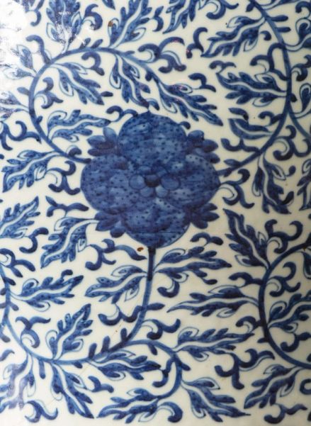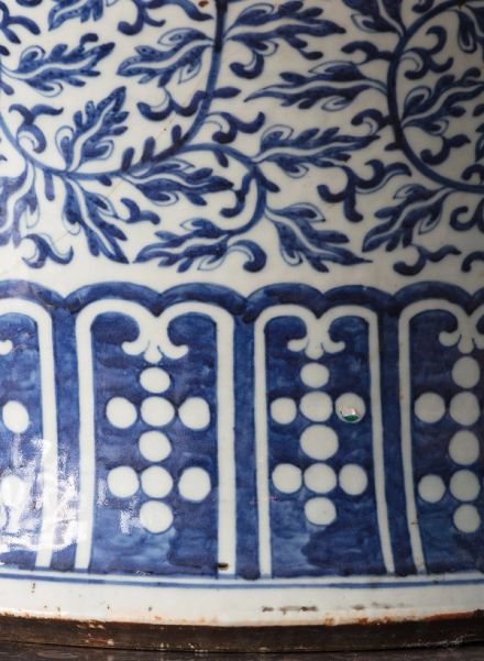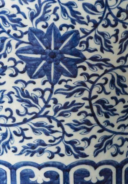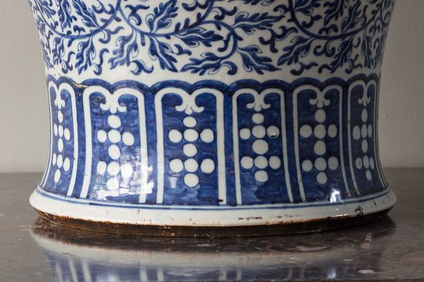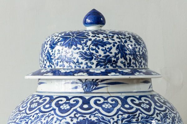 A Large Late 18th Century Chinese Blue and White Baluster Vase and Cover