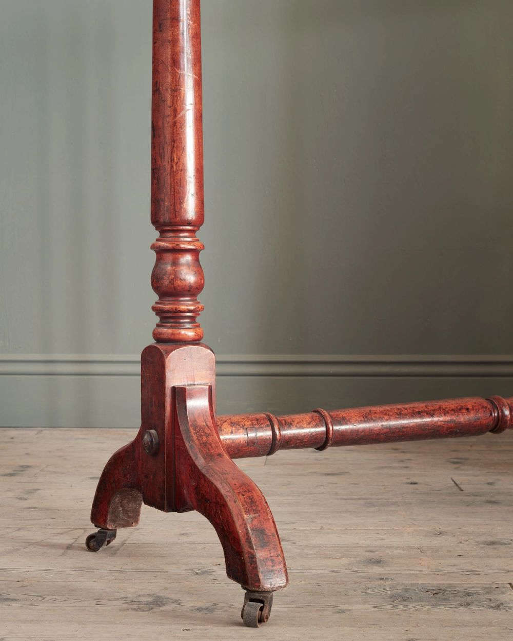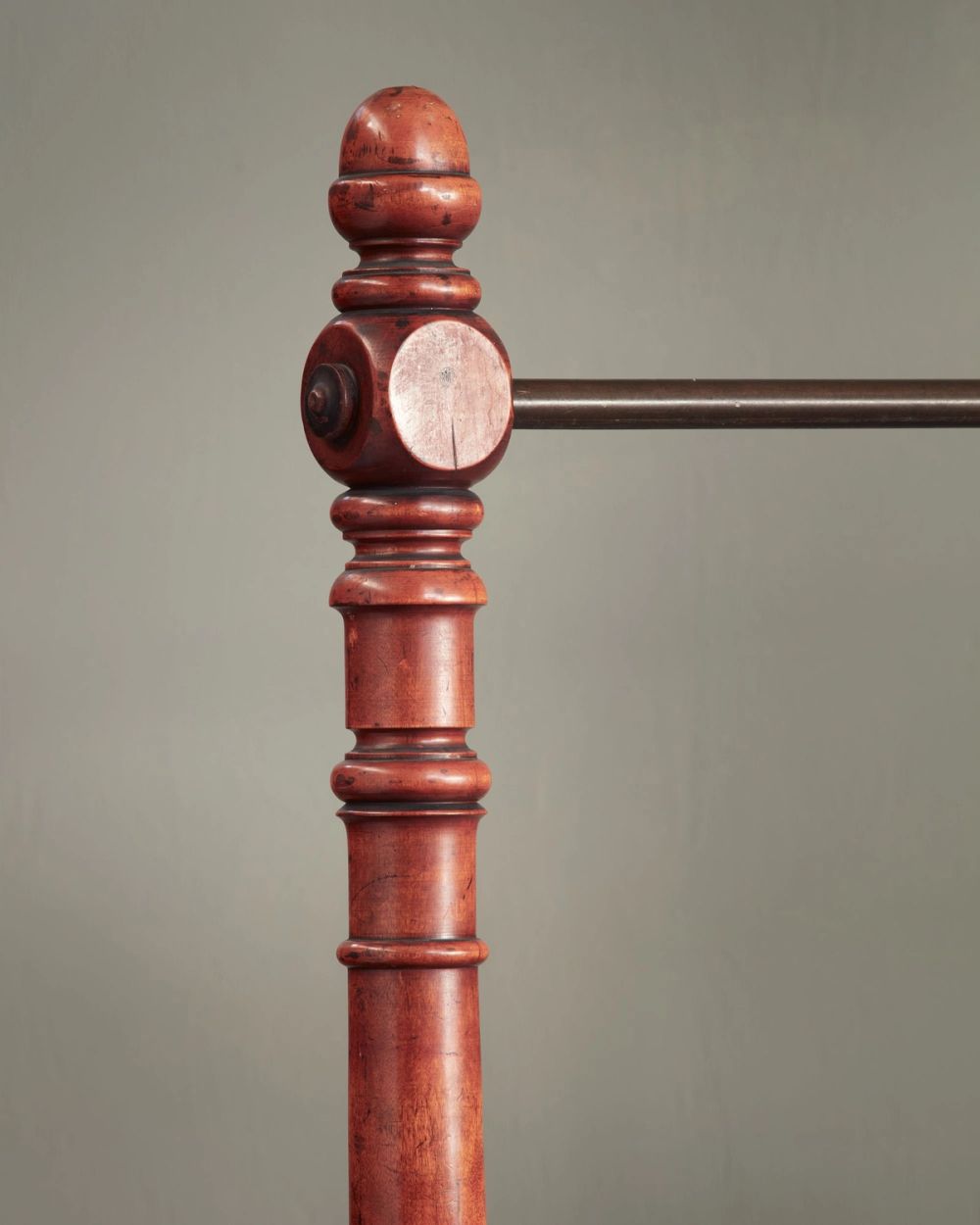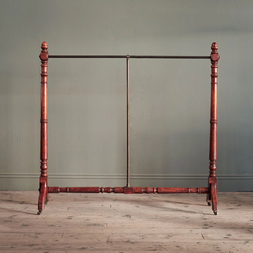 Of great scale, with turned supports and central hanging brass rail, on casters.