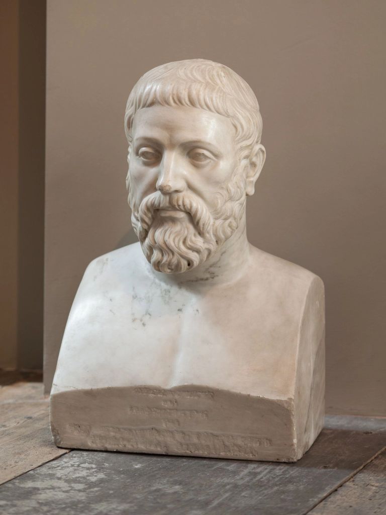 The bearded gentleman gazing forward, with traces of an old inscription on the base.