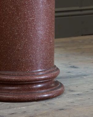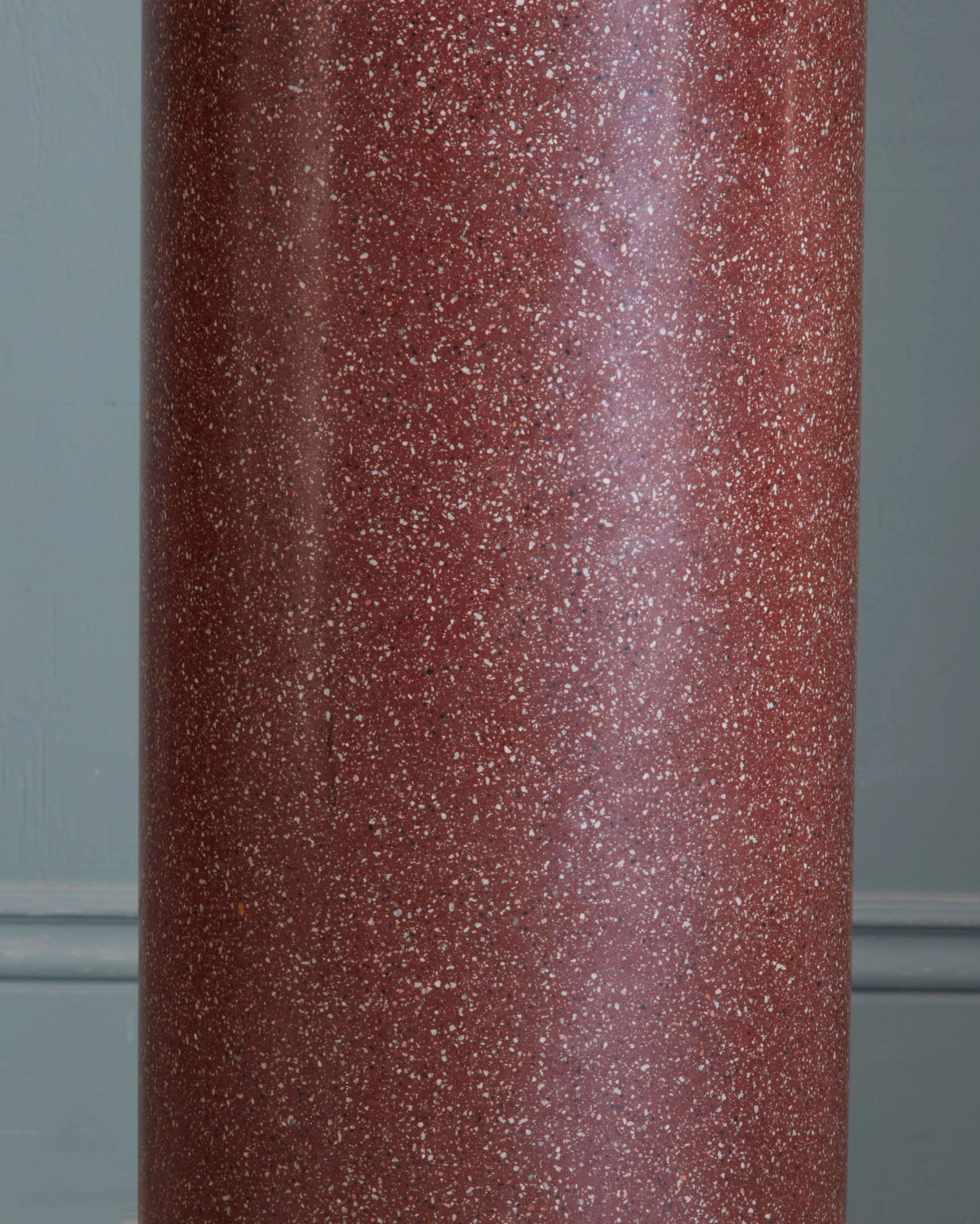 Stately of poise and in crisp condition, this column dates from the early 19th century and reflects an enduring enthusiasm for the Classical form. Scagliola is a form of artificial marble developed in the 16th century, and the present example is in imitation of Imperial Porphyry, highly prized by Byzantine, Egyptian, and Roman cultures (see the octagonal font in the Lateran Baptistery, Rome, constructed using porphyry columns).