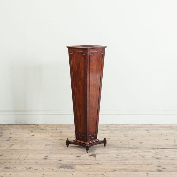 REcorded together with a smaller pedestal at Monkton House, the property of Edward James, in a 1977 inventory for this property, as ‘M453 A 19th Century mahogany square section torchere on platform base, 4’4″ high, and a smaller ditto, 3’2″ high’ (“Inventory and Valuation of the Contents of Monkton House, East Marden, Near Chichester, West Sussex”, by King & Chasemore, under ‘Garden, Stables, Swimming Pool, Etc.’, p.35)