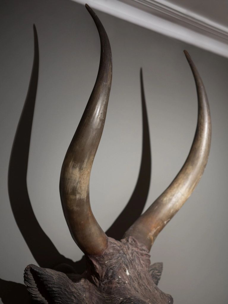 A Life Sized Papier Mache Model Of Prized Steer, mounted with a pair of 30" horns.