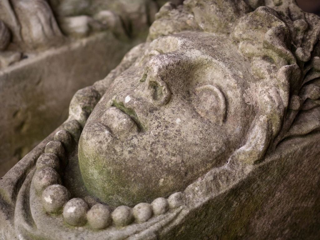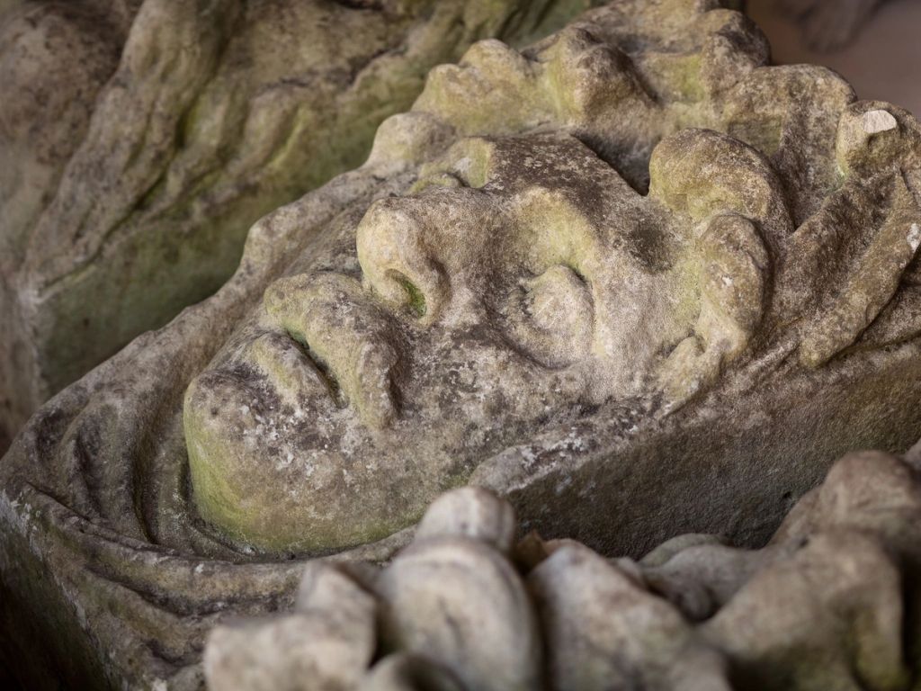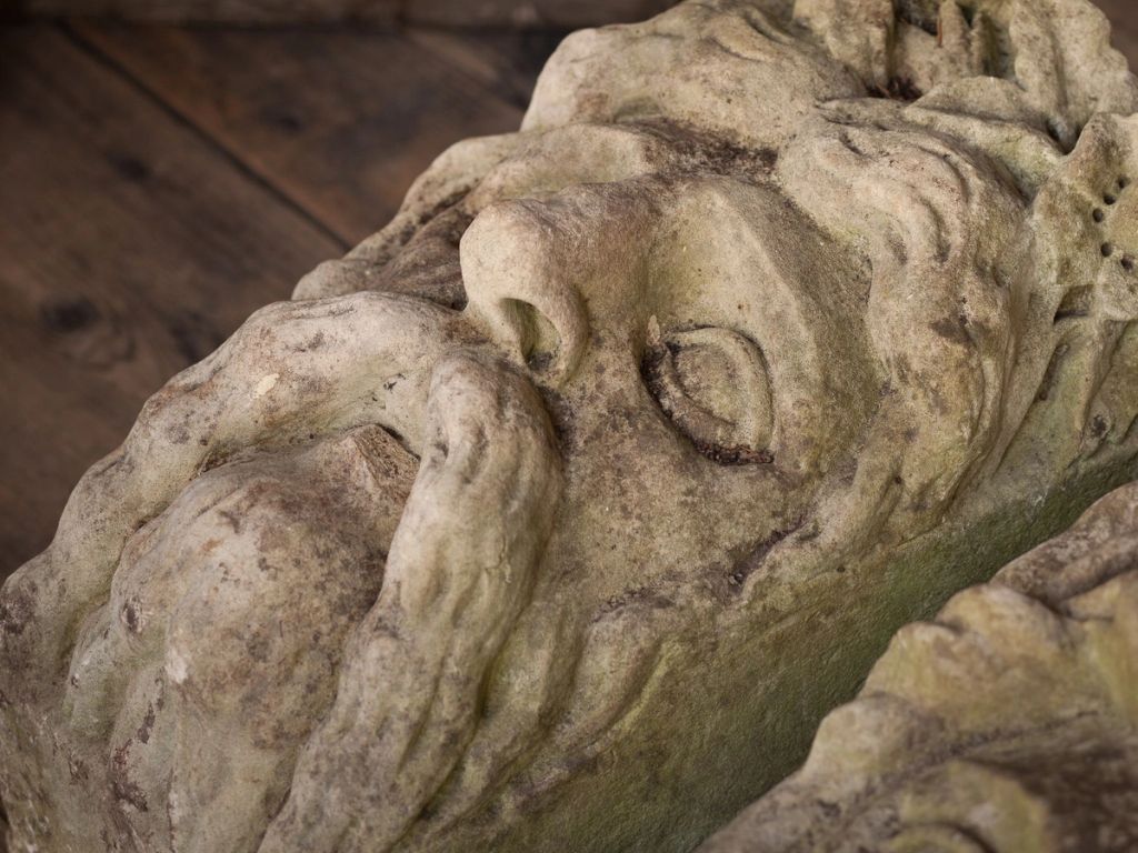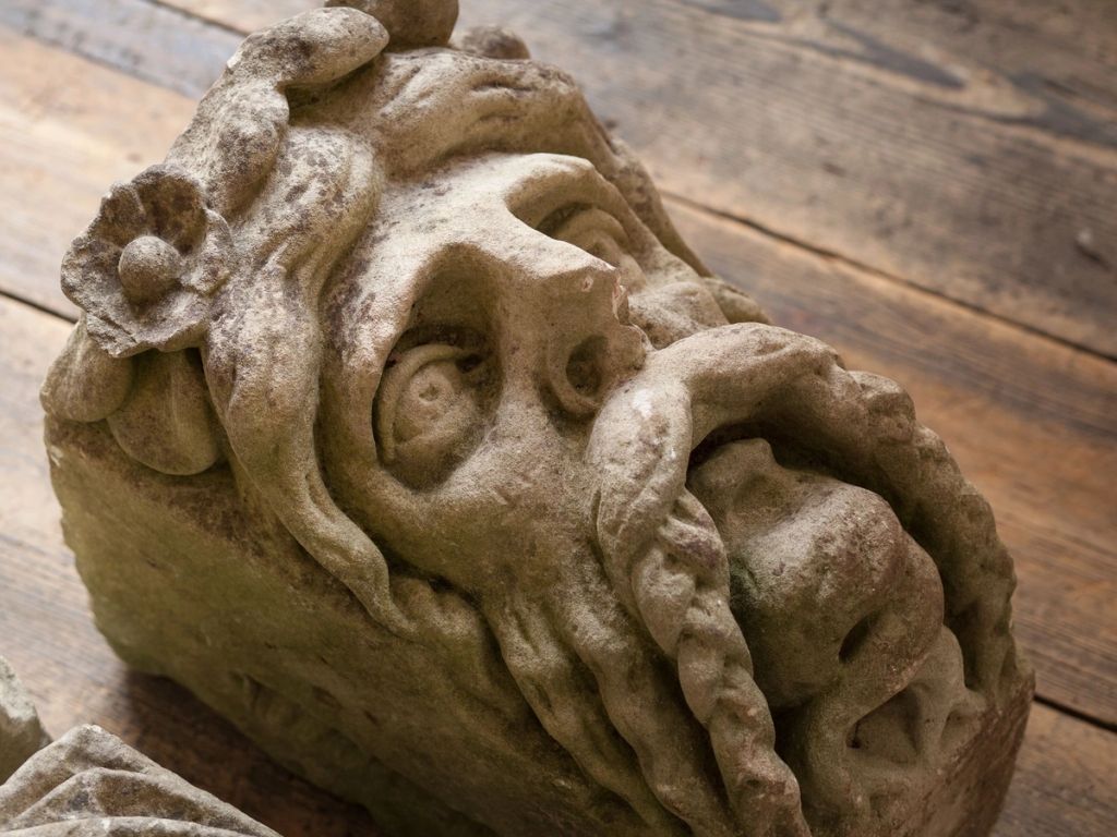 Three depicted as the Green Man, with beards and foliate headdress, the other two with more classical features.