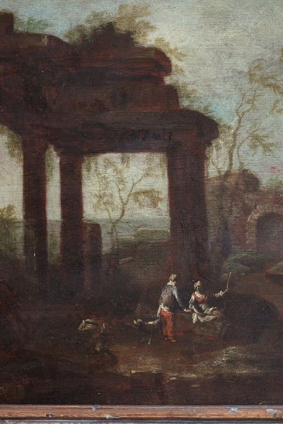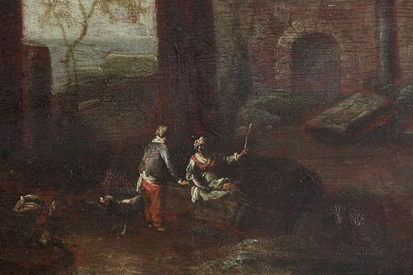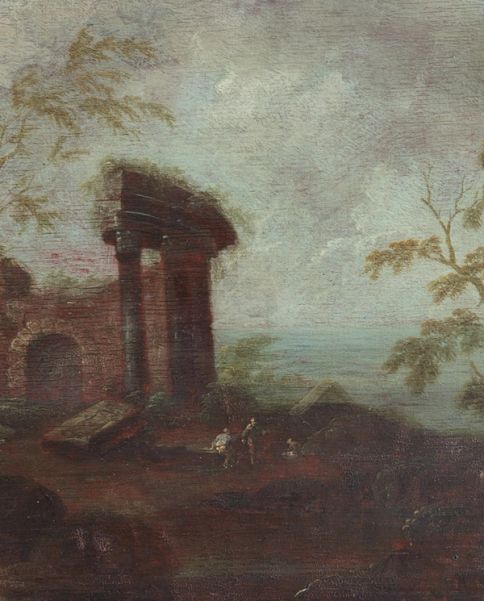 An Early 18th Century Oil on Panel Capriccio of Architectural Ruins