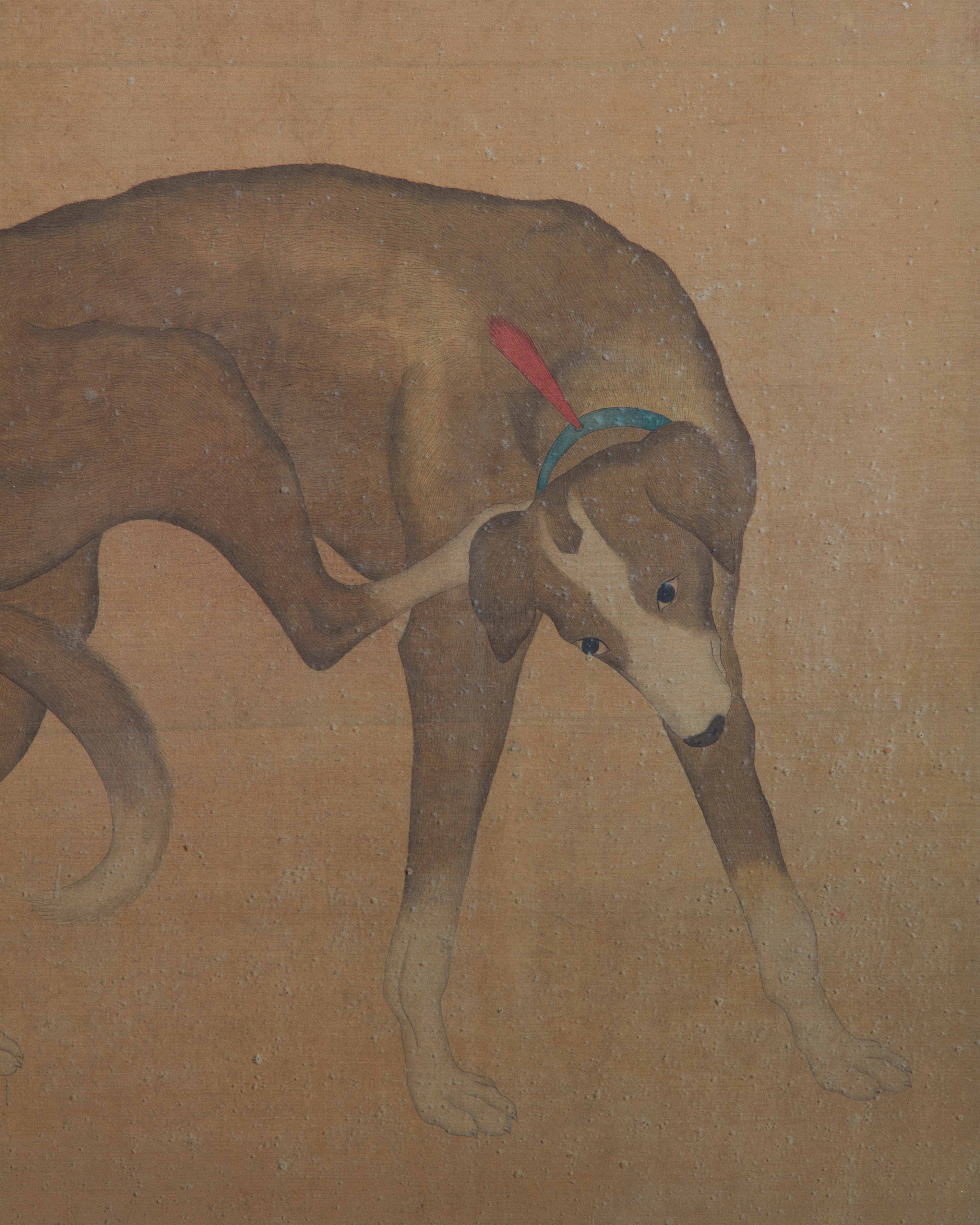 An Early 20th Century Ink and Colour on Silk, depicting a Hound