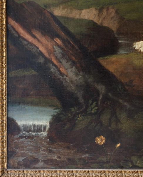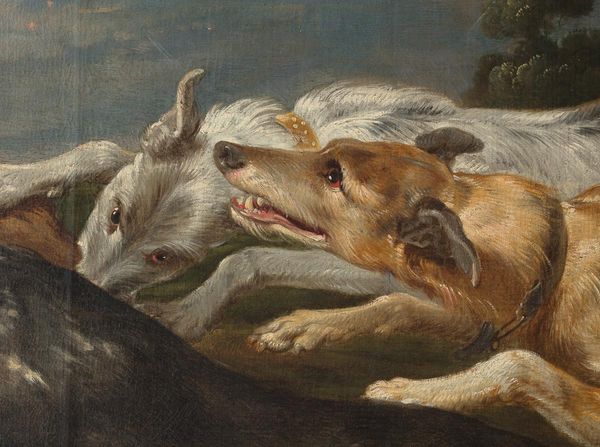This powerful hunting scene is closely associated to the work of Antwerp-born seventeenth-century painter and draughtsman Frans Snyders, widely considered the "progenitor of Flemish Baroque still-life and animal painting."