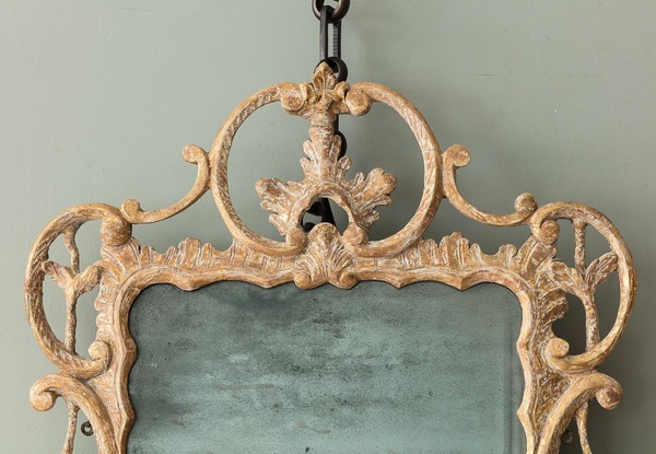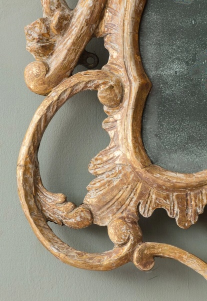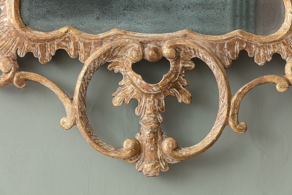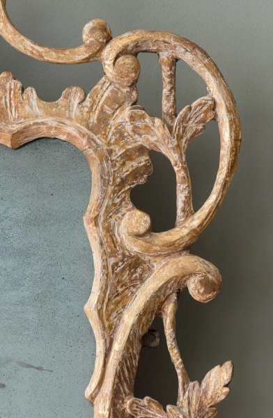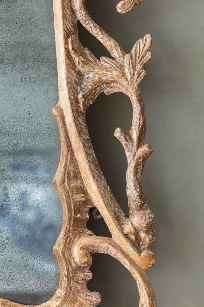 With extensive c-scroll and acanthus finely carved detailing, and gently shaped giltwood frame, the surface carefully dry stripped to reveal the original gilt remnants showing an original and soft ‘sleepy’ patina, enclosing a misty and foxed mercury plate.