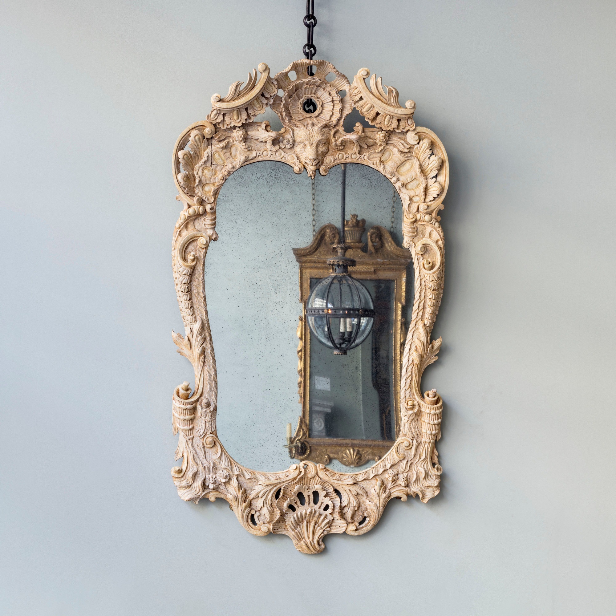 An Exceptional Rococo Carved Giltwood Pier Mirror with Central Goat Mask