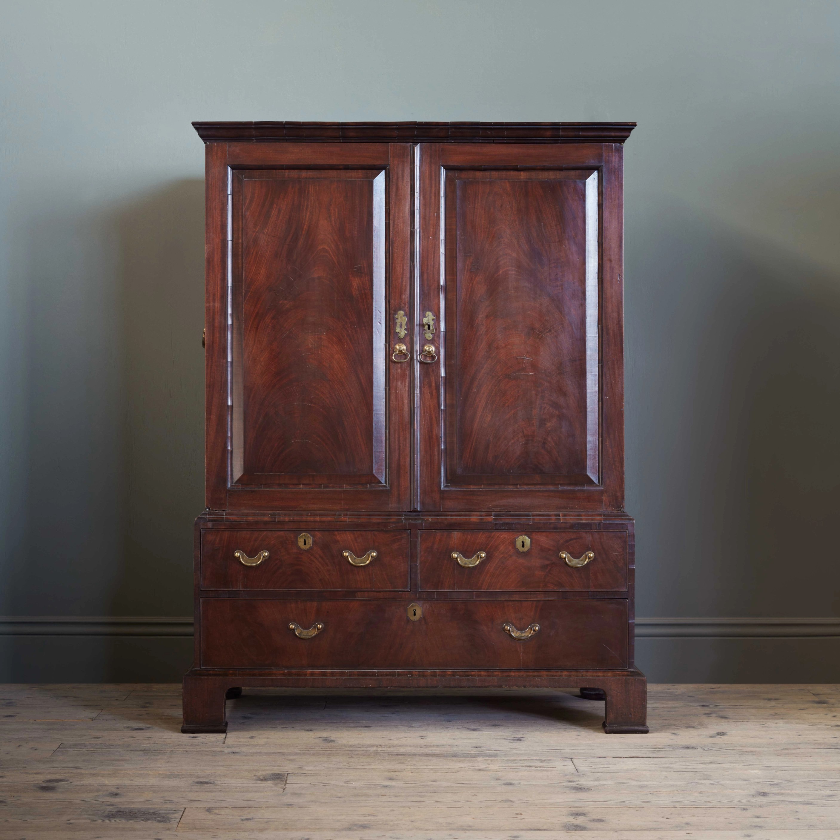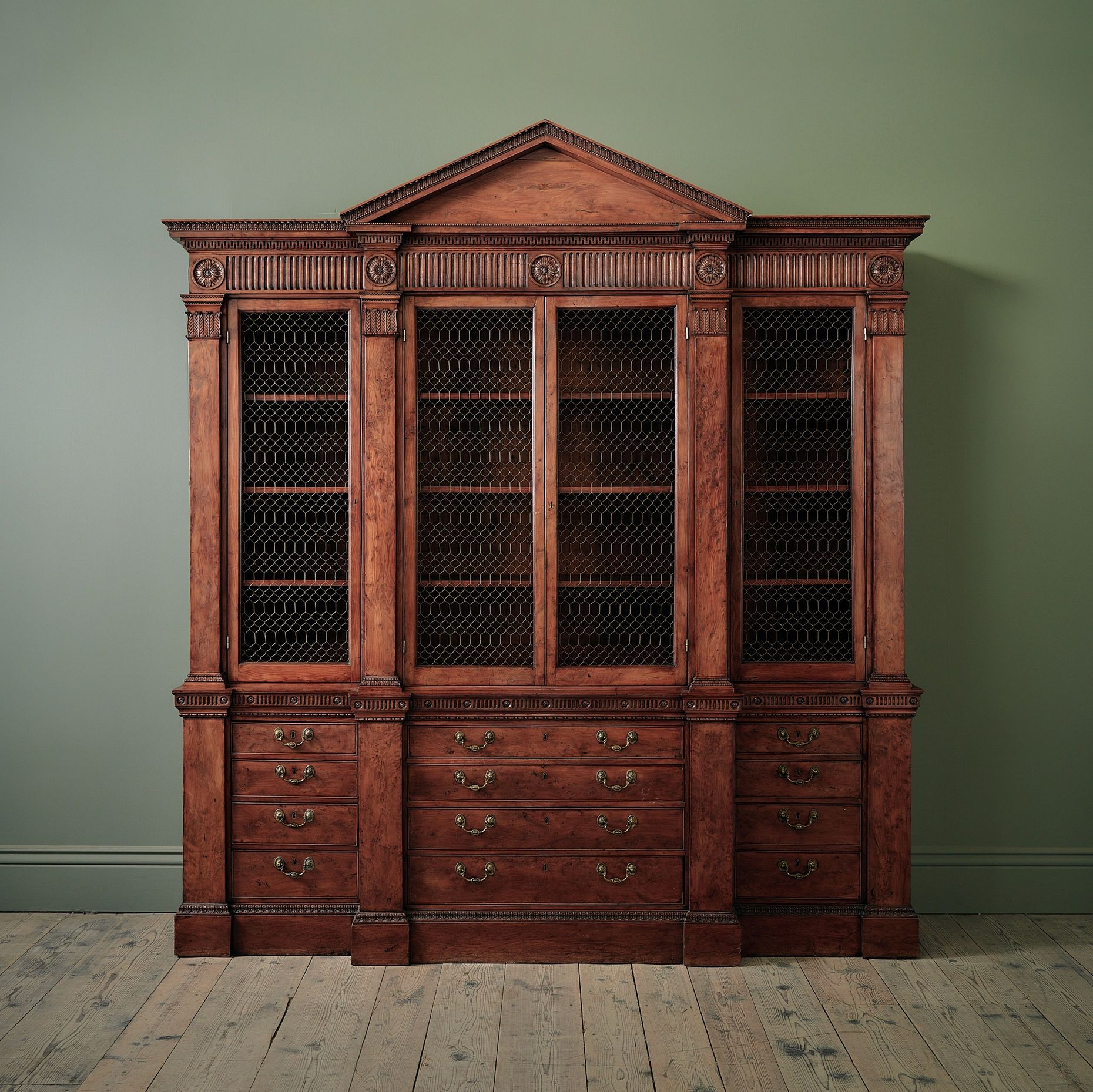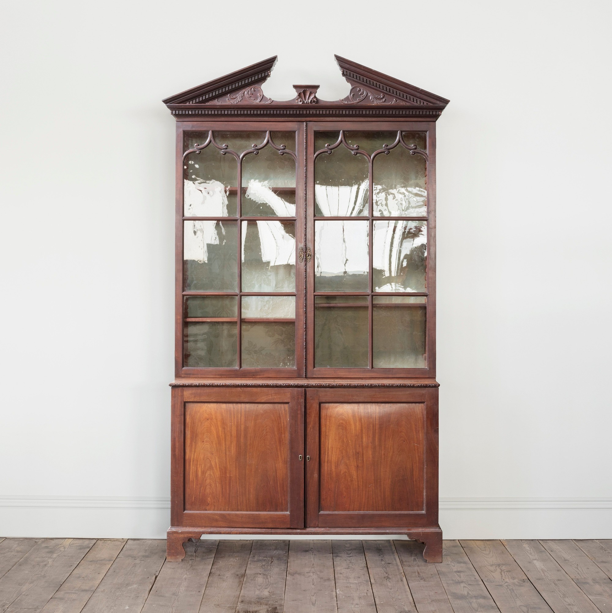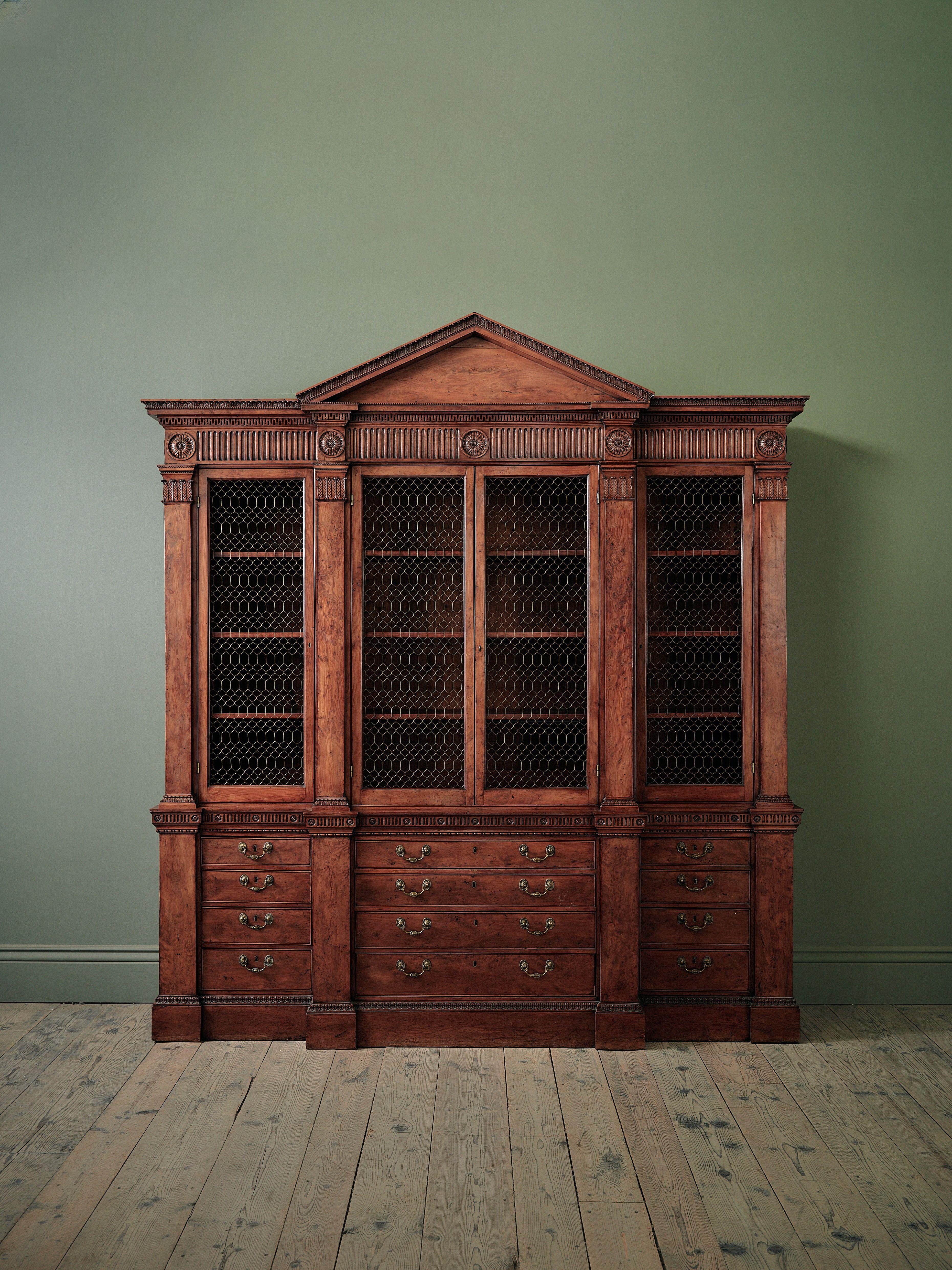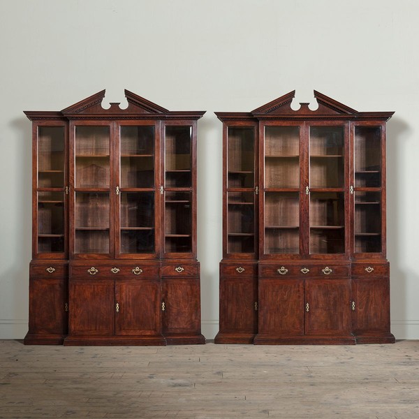From the humble estate linen press or simplicity of a Georgian pot cupboard, to the monumental breakfront library bookcase or elegance of a Queen Anne lacquer or japanned cabinet, the classical proportion of the English Country House aesthetic is at the core of our collection of 18th century antique bookcases; alongside these lie several remarkable 19th century pieces, hailing from the Gothic or Egyptian revivals, and elsewhere.